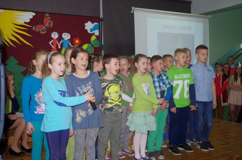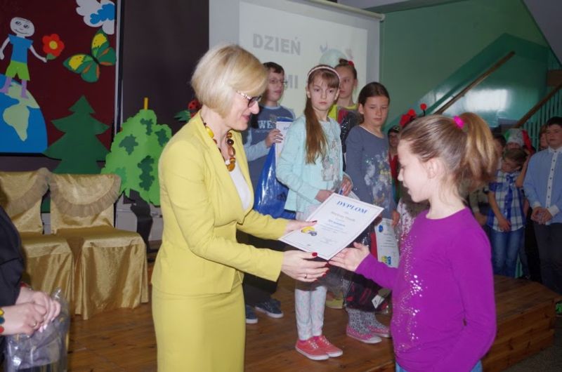 W czwartek 30 kwietnia uczniowie wszystkich etapów edukacyjnych Zespołu Szkół w Wielichowie świętowali Dzień Ziemi. Rano odbył się uroczysty apel pt. „W królestwie odpadów” przygotowany przez klasy 6b i 2b dla uczniów szkoły podstawowej i oddziału przedszkolnego, nauczycieli, dyrekcji oraz gościa honorowego – Pani Burmistrz Honoraty Kozłowskiej. Po występach uczniów nastąpiło wręczenie nagród w konkursach zorganizowanych z okazji Dnia Ziemi. Jako pierwsza nagrody wręczała Pani Burmistrz za konkursy gminne „Wszystkie dzieci segregują śmieci” i „Na tropie dzikich wysypisk w Gminie Wielichowo”, których wyniki zostały wcześniej ogłoszone na stronie internetowej Urzędu Miasta i Gminy, a wystawę prac można obejrzeć na parterze budynku szkoły podstawowej. Pani Dyrektor Bogumiła Andrzejewska wręczyła nagrody w konkursach szkolnych „Szukamy zysku w odzysku”, który polegał na między klasowej rywalizacji w zbiórce surowców wtórnych oraz „Listy dla Ziemi”.