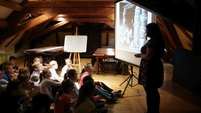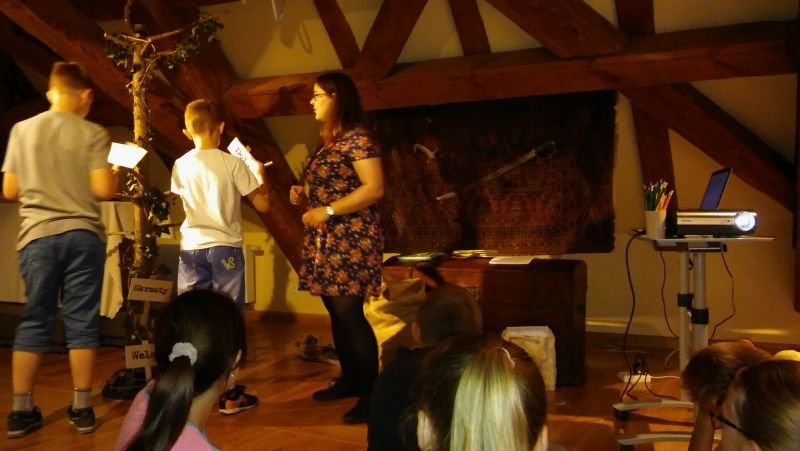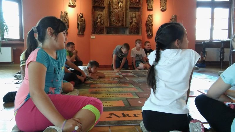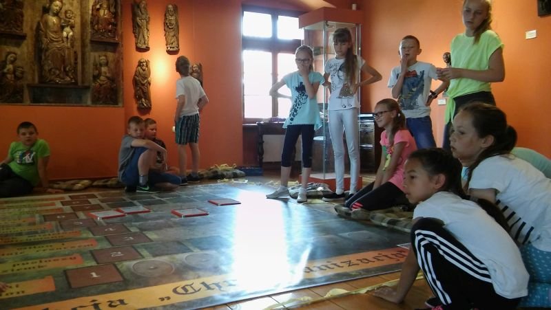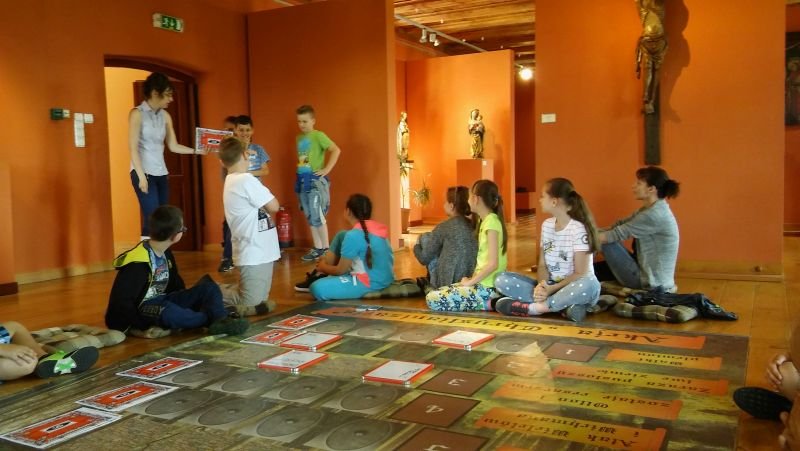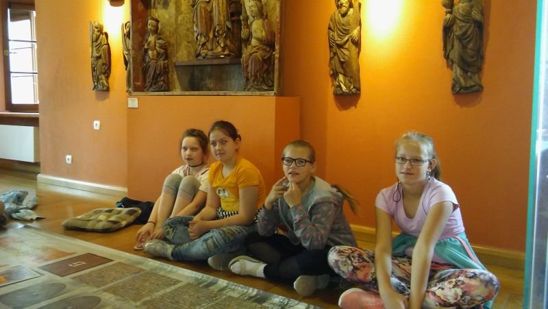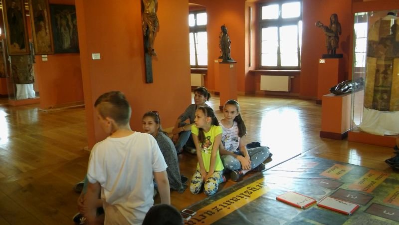 W ostatni dzień maja klasy IV pod opieką p. M. Rombel oraz pań wychowawczyń wybrały się do Poznania, do Muzeum Archidiecezjalnego. Tam uczestniczyli w dwóch zajęciach edukacyjnych związanych z 1050 Rocznicą Chrztu Polski: „W tajemniczej krypcie” oraz „Akcja Chrystianizacja”. Pierwsze zajęcia miały na celu zapoznanie dzieci z wierzeniami Słowian i początkami chrześcijaństwa w Polsce. Prowadzone były w budynku Muzeum, następnie w pierwszym na ziemiach Polan kościele NMP na Ostrowie Tumskim, zbudowanym na fundamencie pozostałym po Pallatium (pałacu Mieszka) i pierwszej kaplicy należącej do księcia oraz w Katedrze i jej podziemiach. Dzieci z pomocą kart informacyjnych odnajdowały i zapisywały na nich ciekawe miejsca związane z chrztem Mieszka. W Katedrze najbardziej zaciekawiła ich tzw. „Złota Kaplica”, w której znajdują się posągi pierwszych władców oraz ich sarkofag. „Akcja Chrystianizacja” to zajęcia prowadzone w formie gry historycznej. Uczniowie, podzieleni na 4 grupy przechodzili kolejne poziomy odpowiadając na pytania i rozwiązując zadania. W ciekawy sposób zdobywali wiedzę i jednocześnie uczyli się nawzajem. Każde zajęcia prowadziły uczniów do odnalezienia ważnej relikwii znajdującej się w Muzeum, którą jest miecz Św. Piotra. Ów miecz przywiózł do Polski biskup Jordan jako podarunek Papieża dla Mieszka I z okazji jego chrztu. Na zakończenie zajęć uczniowie otrzymali pamiątkowe dyplomy. Wychodzili bardzo zadowoleni, co świadczy o tym, że podobała im się taka forma zdobywania wiedzy. Mam nadzieję, że jeszcze nie raz zjawimy się w Muzeum Archidiecezjalnym na kolejnych ciekawych zajęciach.