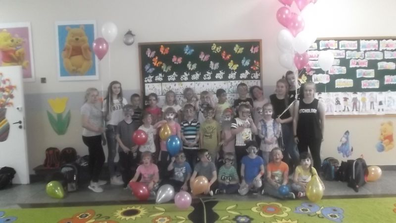 1 czerwca , maluchy z Zerówki świętowały Dzień Dziecka. Na dzieci czekało wiele niespodzianek. Swój dzień rozpoczęły od zabaw w Zerówce przy muzyce. Otrzymały mnóstwo cukierków, balonów i małą niespodziankę. Bawiły się wspaniale nie wiedząc, że to dopiero początek świętowania. Przedszkolaki wyruszyły na spacer, którego celem była restauracja MDS. Na maluchy czekały desery oraz napoje. Atrakcją były tańce przy muzyce na ogromnej sali oraz balony wypełnione helem. Przy okazji dzieciaki zapoznały się z obsługą w restauracji. Zabawy było co niemiara. Lecz to nie koniec niespodzianek! Po powrocie do Zerówki czekały na dzieci dziewczyny z gimnazjum, które z weną twórczą malowały buzie przedszkolaków. Świętowanie przypieczętowano grupowym zdjęciem. Wszystkim dzieciom i tym małym, i tym dużym składamy serdeczne życzenia!