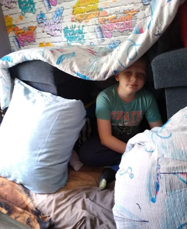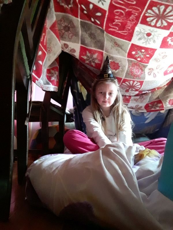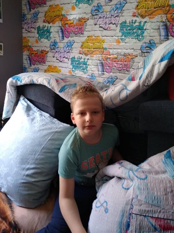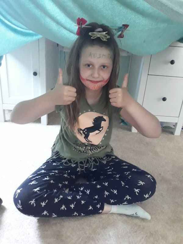 Znaleźliśmy sposób, by ten wyjątkowy dzień przebiegał pod hasłem radosnej zabawy. Na początku każde dziecko stanęło przed lustrem, żeby wyczarować wesołą fryzurę. Nie zabrakło też odważnych, którzy wymalowali kolorowe wzorki na swojej buzi za pomocą kredek, pomadki mamy, a także pasty do zębów. Kolejnym wyzwaniem było budowanie BAZY. I tym razem okazało się, że dzieci świetnie sobie poradziły. Ich pomysłowość i inwencja twórcza są godne podziwu. Nikt nie ma wątpliwości, że BAZA to świetne miejsce do wspólnej zabawy. Najlepiej świadczy o tym to, że już po chwili młodsze rodzeństwo znalazło w BAZIE miejsce dla siebie. Następnie rozwiązywaliśmy zagadki – to ulubione zajęcie dzieci. Ostatnie zadanie pod hasłem: ,,Mój życiowy rekord sportowy” wymagało przeniesienia się na podwórko. Dzieci same zadecydowały z jakiej sprawności pobiją swój  rekord sportowy (kozłowanie piłki, skoki przez skakankę, stanie na jednej nodze, rzuty do celu … itd.)   Tegoroczny Dzień Dziecka różnił się od minionych, jednak pomimo wszystko był bardzo udany. Dostarczył każdemu dziecku dużo, dużo radości!