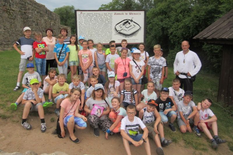 Dnia 30 maja wybraliśmy się na klasową wycieczkę na Szlak Piastowski. Pierwszym miejscem, które zwiedziliśmy było Muzeum Pierwszych Piastów na Lednicy. Na Ostrowie Lednickim powitało nas trzech jeźdźców: biskup Radzym Gaudenty, Bolesław Chrobry i cesarz niemiecki Otton III. Oglądaliśmy ruiny pałacu Mieszka I i Bolesława Chrobrego, kościoła oraz chaty i zagrodę na podgrodziu. Następnym punktem wycieczki była osada łużycka w Biskupinie sprzed 2500 lat. W zrekonstruowanych chatach prastarych Słowian podziwialiśmy wyroby kamieniarza, rymarza, garncarza. Wielką atrakcją dla wszystkich był przejazd kolejką wąskotorową z Biskupina do Wenecji. W Wenecji zwiedziliśmy Muzeum Kolei Wąskotorowej oraz średniowieczne ruiny zamku Krwawego Diabła Weneckiego. Pełni wrażeń wróciliśmy do domów.