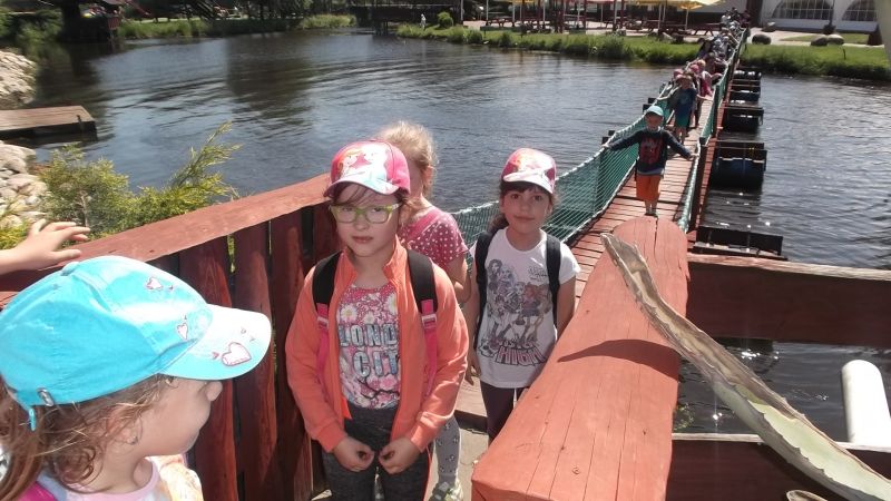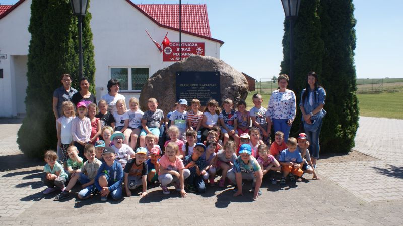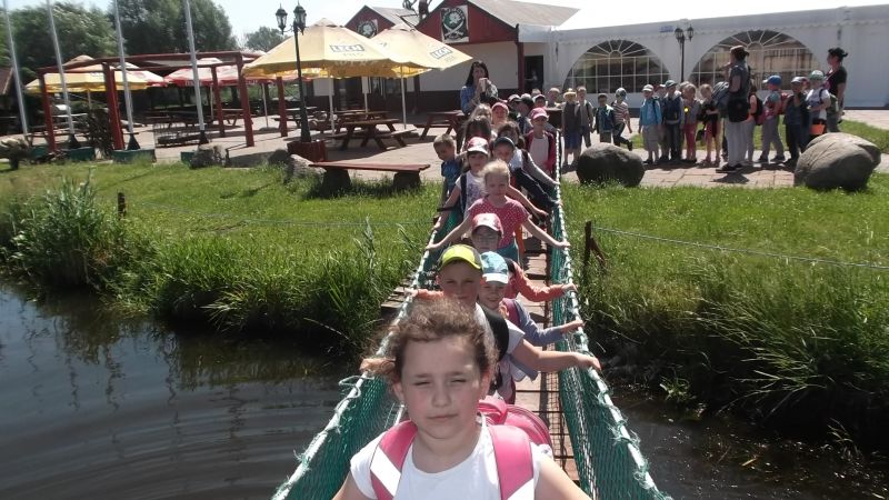 Tegoroczny Dzień Dziecka na pewno na długo pozostanie w pamięci dzieci z ,,zerówki”. Tego dnia wybrały się one ze swoimi wychowawczyniami i opiekunami na wycieczkę do parku rekreacyjnego – Nenufar Club w Kościanie. Na początku uczestniczyliśmy w programie ,,OBIAD” – prowadzonym przez Szefa Sali, który w ciekawy sposób uczy elegancji i zachowania SAVOIR VIVRE przy stole. Na twarzach dzieci widać było podekscytowanie, gdy zasiadały przy wytwornie przygotowanym stole, a elegancko ubrane kelnerki podawały obiad. Każde dziecko starało się przestrzegać zasad dobrego zachowania się przy stole podczas obiadu. Wszyscy pięknie posługiwali się sztućcami i prawidłowo odkładali je po posiłku. Następnie poszliśmy do Nufrika – to sala zabaw. Tu na 4-poziomowej konstrukcji z licznymi przeszkodami, gdzie są zjeżdżalnie, baseny z piłeczkami, labirynty, armatki pneumatyczne i trampoliny dzieci mogły bawić się do woli. W drodze powrotnej zatrzymaliśmy się w Śniatach, w miejscu upamiętniającym Franciszka Ratajczaka. To właśnie tę postać historyczną rysowały dzieci w konkursie plastycznym pt.: ,,Od Franusia do Franciszka”. Czas spędzony na wycieczce przebiegał w radosnej atmosferze, a uśmiech nie znikał z buzi naszych dzieci.