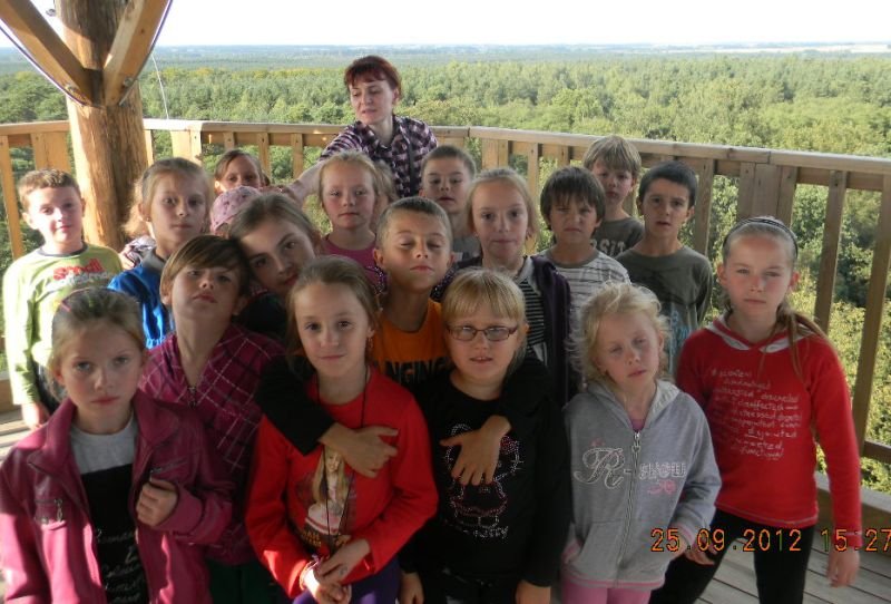Niecodziennym przeżyciem była też dla nas jazda bryczką oraz wejście na pobliską wieżę widokową, z której mogliśmy podziwiać krajobrazy naszej okolicy . Nie zabrakło również pysznego poczęstunku - pieczonych kiełbasek i słodkich rogalików.
