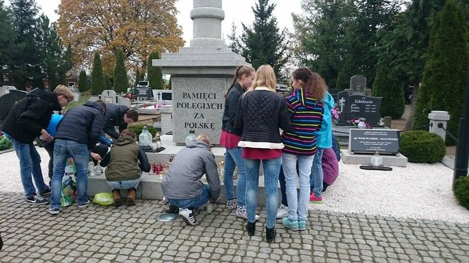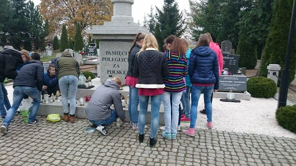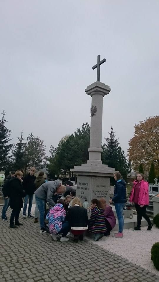Samorząd Uczniowski zorganizował akcję "Znicz światełko pamięci". Gimnazjaliści zebrali ponad 130 zniczy. Wszystkie zapłonęły na grobach powstańców, nauczycieli, uczniów, zasłużonych mieszkańców naszej gminy oraz w miejscach pamięci narodowej.