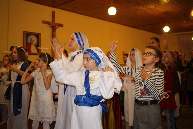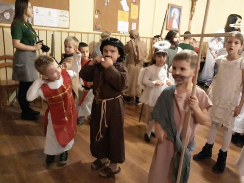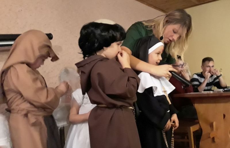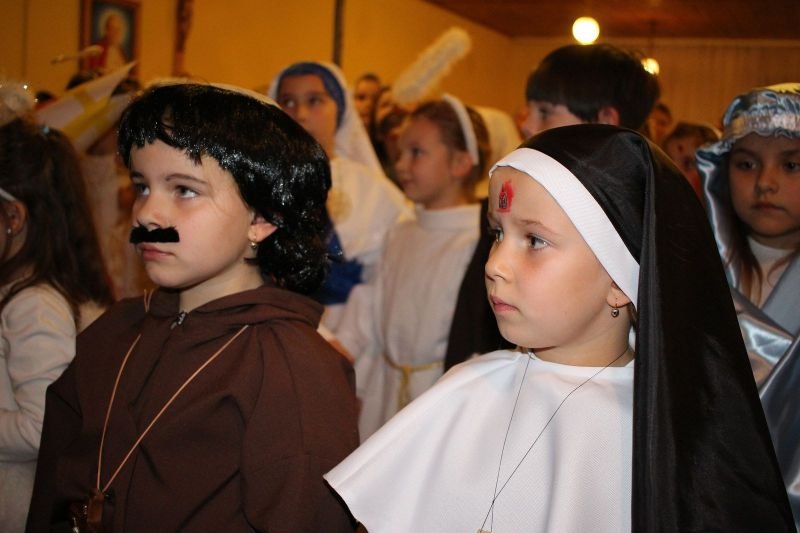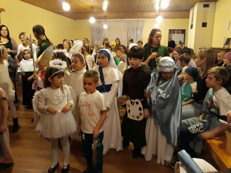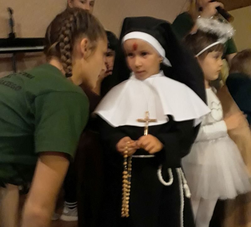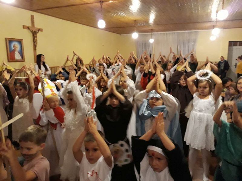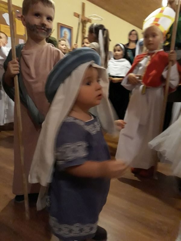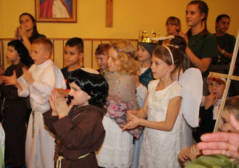 We wtorek 30 października br. w Wielichowie z inicjatywy ks. wikariusza Adriana Przybeckiego odbył się drugi już Bal Świętych. Wydarzenie to jest organizowane przede wszystkim z myślą o młodych ludziach. W przeddzień Wszystkich Świętych, chcemy pokazać, że świętość dotyczyć może każdego z nas. Uczestnicy przebrani za postacie świętych i aniołów spotkali się najpierw na Mszy Św. o godz. 18.00, a następnie przeszli do parafialnej salki, gdzie odbyła się druga część spotkania. To okazja, by pokazać, że nam na świętości zależy i ta świętość wcale nie jest nudna, ale radosna, ciekawa i interesująca. Na balu były tańce, śpiewy, a także quizy o świętych oraz coś słodkiego. Całość spotkania na salce animowali harcerze pod kierunkiem Aleksandry Michalskiej. Wspólna zabawa ze świętymi to „mała szkoła świętości”, która pokazuje, że aby zostać świętym trzeba być dobrym i radosnym. Wśród pięknych strojów przygotowanych przez rodziców wyróżniono i nagrodzono najładniejsze.  Przesłaniem balu jest kultywowanie chrześcijańskiej tradycji obchodów dnia Wszystkich Świętych poprzez poznawanie życiorysów Świętych oraz zachęcanie do ich naśladowania. Również w szkole, w klasach młodszych odbyły się lekcje religii związane z Uroczystością Wszystkich Świętych,a uczniowie wykonywali postaci wybranych świętych.