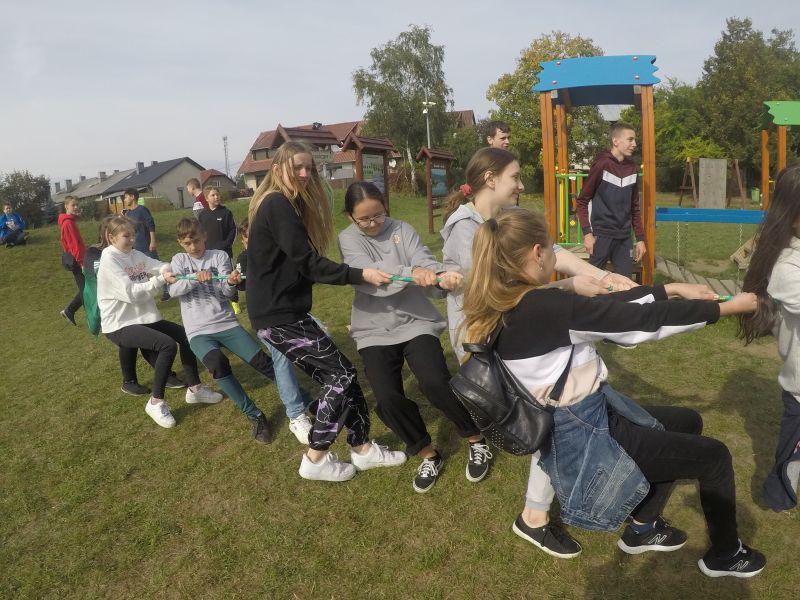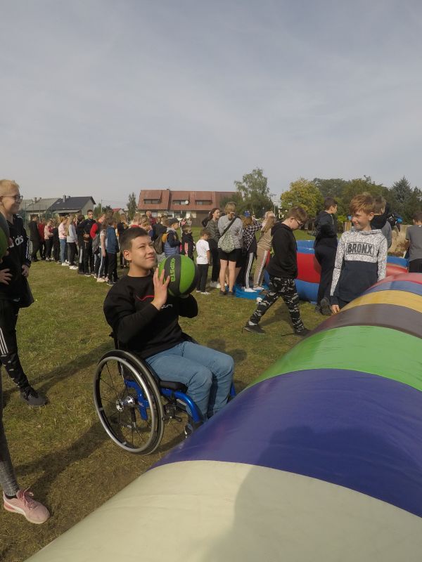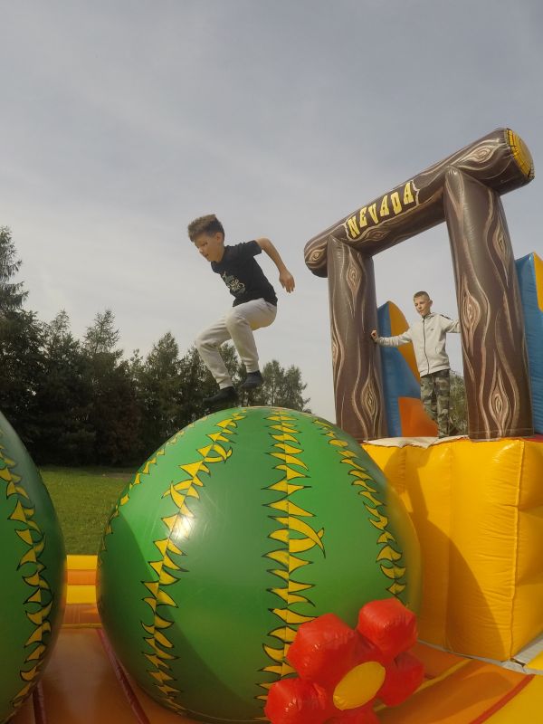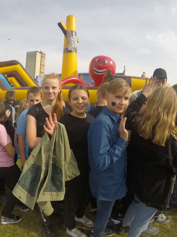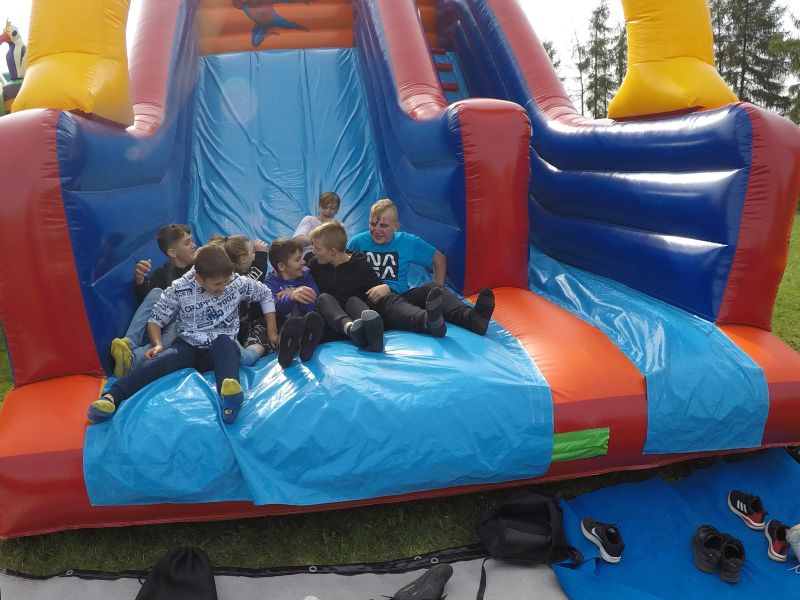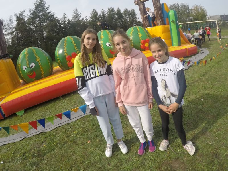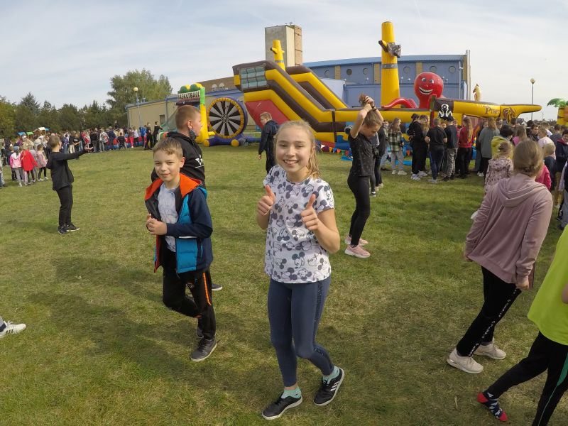 Teren przy szkole zamienił się na jeden dzień w wielki plac zabaw. Zamiast lekcji uczniowie naszej szkoły oraz szkoły z Łubnicy mieli okazję wziąć udział w licznych zabawach na świeżym powietrzu. Przygotowano dla nich mnóstwo atrakcji, m.in.: dmuchane zjeżdżalnie, zamek do skakania, bramka celnościowa, dmuchany dart, dmuchana koszykówka, siłomierz kopacz, byk rodeo, malowanie twarzy, miasteczko ruchu, nauka udzielania pierwszej pomocy, gry ekologiczne, kącik pozytywnego myślenia oraz popcorn. Zabawy i śmiechu było co niemiara.