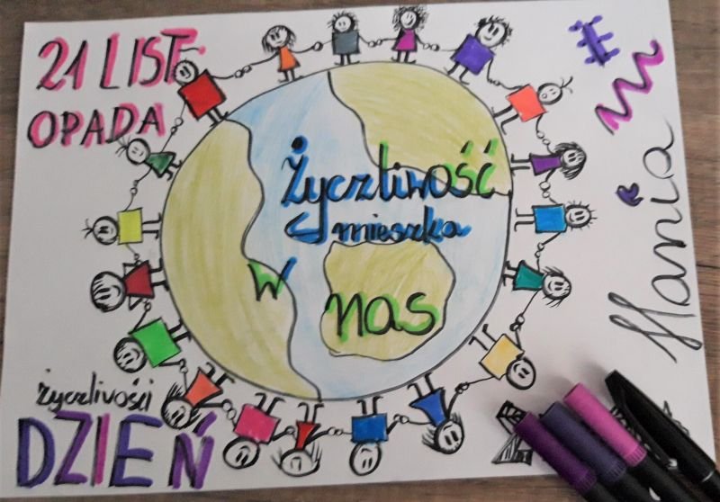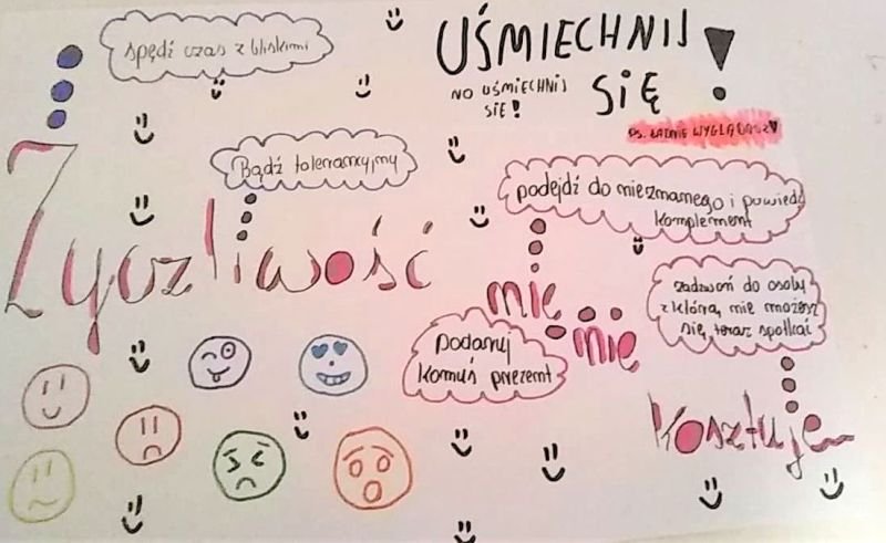 Zeszły tydzień minął Nam pod hasłem Życzliwości i Tolerancji. Uczniowie każdego dnia otrzymywali zadania do wykonania. Zadania, w których musieli pomyśleć o sobie i swoich najbliższych. Podczas godzin wychowawczych, realizowano tematykę związaną z dobrocią dla innych. Także podczas zajęć sketchnotingu, pod czujnym okiem pań Anny Zięby i Magdaleny Fechner, uczniowie tworzyli prace związane z życzliwością.