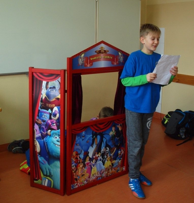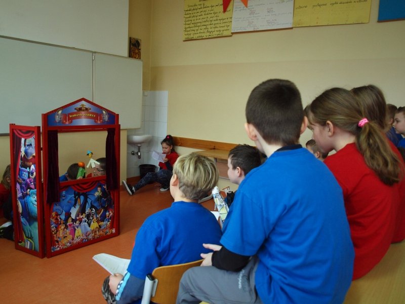 Nie tylko organizowaniem muzeum zajmowali się jednak ostatnio młodzi artyści. Przygotowali oni – zainspirowani lekturą „Pinokia” – przedstawienie teatru marionetek. Lalki wykonane zostały własnoręcznie przez czwartoklasistów – ich pomysłowość przeszła najśmielsze oczekiwania dorosłych. Ci ostatni mieli zresztą okazję włączyć się w przygotowania do spektaklu, rodzice służyli bowiem uczniom pomocą w realizacji ich artystycznych wizji.