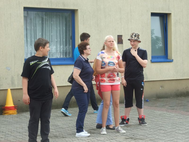 Wszyscy z niepokojem spoglądali w środę, 1 czerwca, w niebo. Prognozy nie były bowiem optymistyczne, a ranek rozpoczął się deszczowo. Okazało się jednak, że aura sprzyjała wszystkim tym, którzy postanowili świętować Dzień Dziecka. Gimnazjaliści nie mogli narzekać tego dnia na nudę, oferta zajęć na ten dzień była bowiem różnorodna. Miłośnicy sportu rywalizować mogli na boisku. Chłopcy rozgrywali mecze w piłkę nożną, dziewczęta zaś w piłkę siatkową. Ci, którzy lubią spędzać wolny czas na dwóch kółkach, mieli szansę spróbować swoich sił na torze sprawnościowym – odważni znaleźli się także w gronie nauczycieli. Jeszcze inni skorzystać mogli z oferty przygotowanej przez Koło dziennikarskie LUZAK. Przedstawiciele klas rozpoznawali z zamkniętymi oczami swoich kolegów i koleżanki, później zaś układali rymowankę, która miała charakteryzować każdy zespół. Ci, którym udało się wykonać zadania najlepiej, obdarowani zostali słodkimi upominkami. O uczniach nie zapomniała także, jak co roku, Rada Rodziców, która zadbała o to, by nikt nie czuł się głodny i spragniony.