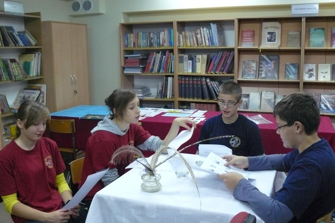 Program obchodów: 1. Wystawa materiałów przyniesionych przez nauczycieli i pracowników szkoły pt."Moje hobby". 2. Spotkania z polską poezją śpiewaną: a. we wtorek z klasami gimnazjalnymi b. w środy z uczniami klas szkoły podstawowej 3. Kiermasz książek z wydawnictwa Tania Książka. 4. Prelekcje dotyczące historii exlibrisów w Polsce i na świecie. 5. Konkurs plastyczny pt."Exlibris - małe dzieło sztuki." 6. Wystawa po konkursowa prac pt." Exlibris - małe dzieło sztuki."