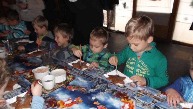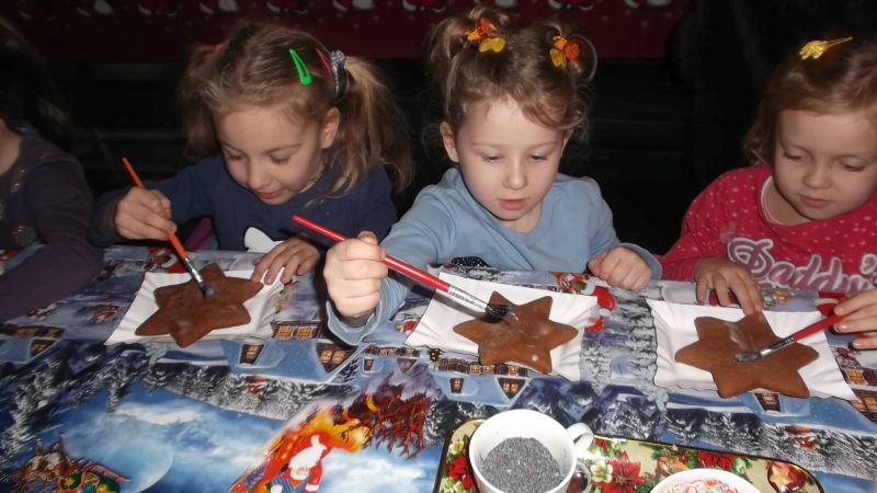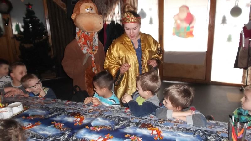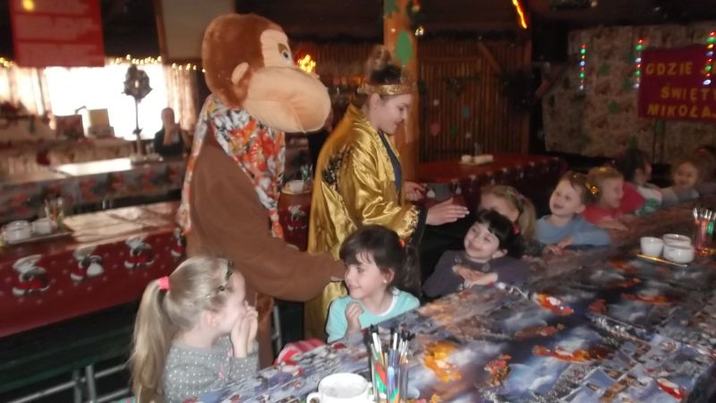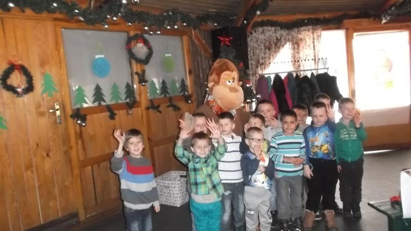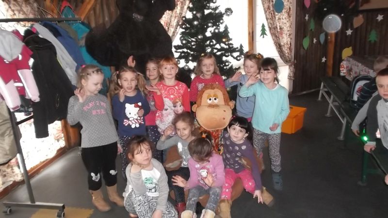 4 grudnia dzieci z oddziału przedszkolnego wybrały się do Kościana na spotkanie z Mikołajem. Maluchy zapoznały się z tradycjami Świąt Bożego Narodzenia. Wśród wielu atrakcji przygotowanych dla naszych milusińskich znalazły się: ozdabianie pierniczków, śpiewanie kolęd, ubieranie choinki, płynięcie tratwą na magiczną wyspę, gdzie odnaleźli Mikołaja.  Dzieci bardzo upodobały sobie małpkę i misia, z którymi bawiły się, mając przy tym wiele radości. Odnaleziony na wyspie Mikołaj zaprosił wszystkich do swojej świątecznej siedziby, gdzie każde dziecko mogło z nim porozmawiać i wyszeptać na ucho swoje największe marzenie. Na pożegnanie maluchy otrzymały drobne upominki. Imprezie towarzyszyła miła i magiczna atmosfera. Dzieci wróciły uśmiechnięte do domów, z nadzieją odnalezienia wymarzonego prezentu pod choinką w wigilijną noc.