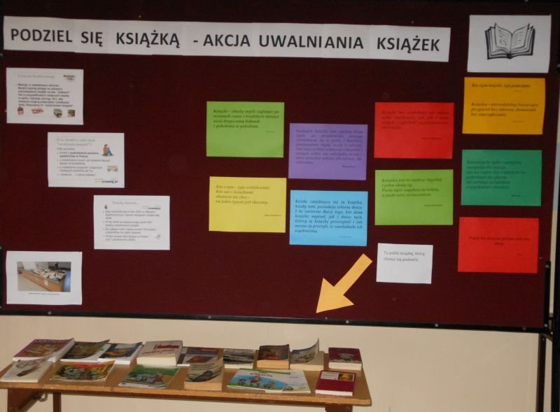 Akcja uwalniania książek trwa nadal, dlatego organizatorki Irena Jagodzik - Nijaka i Joanna Wróbel - Szała zachęcają do dalszego przynoszenia pozycji, którymi chcemy podzielić się z innym oraz korzystania z książek, które ktoś już przyniósł.