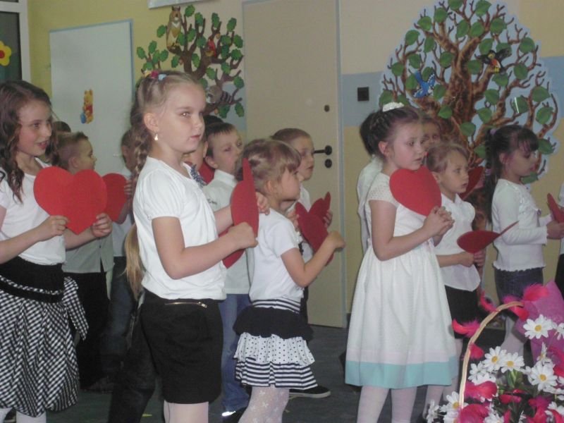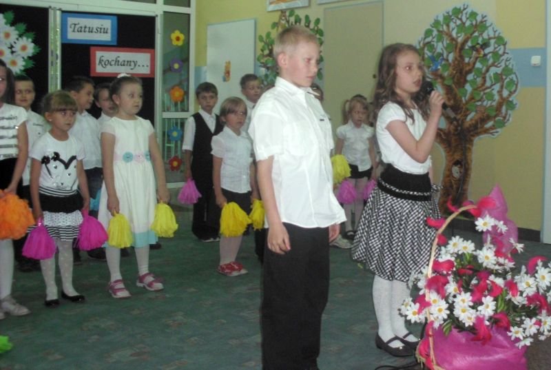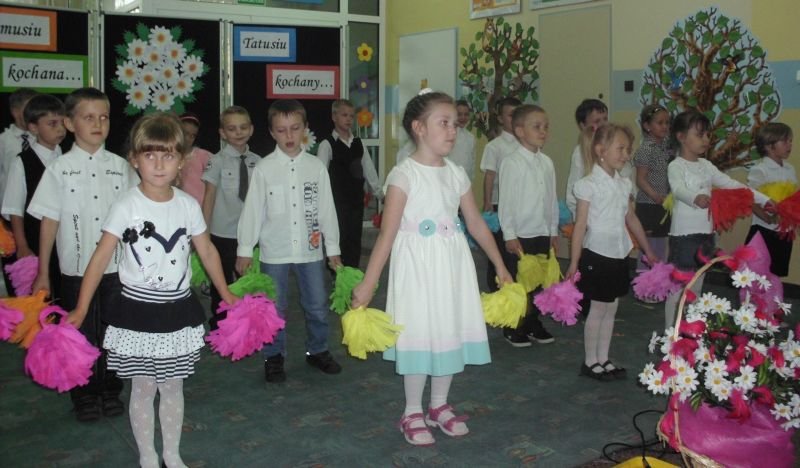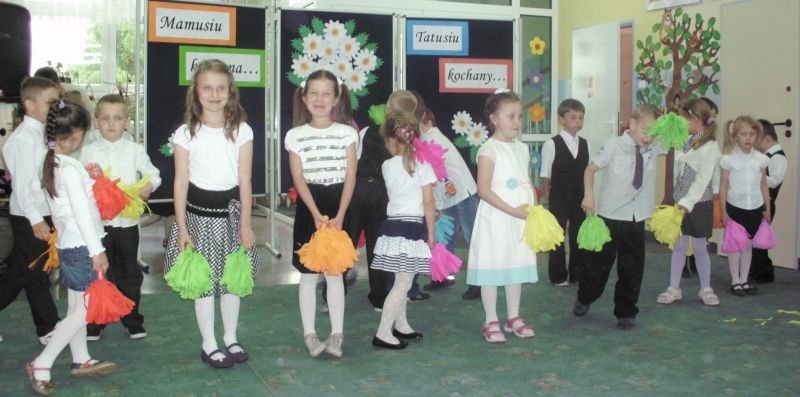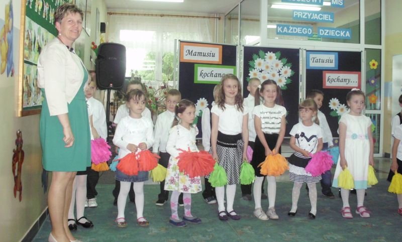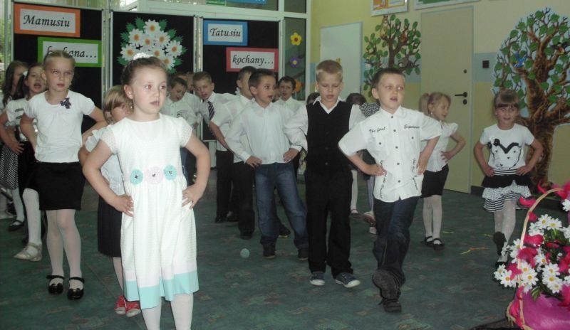 Z okazji minionego Dnia Matki oraz nadchodzącego Święta Taty w klasie 0 "b" odbyła się uroczystość poświęcona rodzicom. Upłynęła ona w miłej i radosnej atmosferze. Dzieci recytowały wiersze, śpiewały wzruszające piosenki i tańczyły. Na koniec odśpiewały głośno swoim mamusiom i tatusiom "Sto lat" oraz wręczyły serduszka z słodkim upominkiem. Później rodzice wraz z swoimi pociechami zaańczyli i zasiedli do wspólnego stołu.