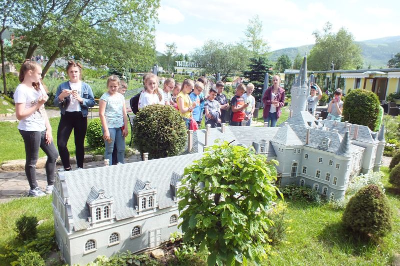 Pierwszy dzień  rozpoczęliśmy do pobytu w  Parku Miniatur Zabytków Dolnego Śląska w Kowarach, gdzie podziwialiśmy niezwykłe budowle przedstawione w skali 1:25. Drugim  punktem wycieczki były Sztolnie w Kowarach- podziemna trasa turystyczna w dawnej kopalni uranu. Tutaj poznaliśmy pracę górników, techniki wydobywcze, przyjrzeliśmy się licznym zbiorom minerałów i kamieni szlachetnych. Następnie udaliśmy się do  Muzeum Klocków Lego i Gier Video, by podziwiać   makiety najciekawszych tematycznie serii Lego (Star Wars, Technic, Miners, Atlantis, City), jak również wiele autorskich budowli. Dużo emocji i radości  sprawiło  każdemu zwiedzającemu to, że sam mógł uruchomić np. pociąg, posterować maszyną budowlaną lub wprawić w ruch najróżniejsze elementy każdej z makiet, dzięki czemu stały się one małym światem tętniącym życiem. Drugi dzień to całodniowa wędrówka po górach. Najpierw poznanie  historii Świątyni Wangi, a potem trochę męcząca, aczkolwiek bardzo pouczająca wspinaczka- najpierw do schroniska Samotnia, później  Strzecha Akademicka, potem do  Domu Śląskiego, by w końcu zdobyć upragniony szczyt, Śnieżkę  (1603 m). Wędrówka w dół nie była już tak forsująca, a to dlatego, że trwała dużo krócej, bo z Kopy wyciąg krzesełkowy przewiózł nas do Karpacza. Na dole czekała kolejna atrakcja, a mianowicie Alpejski Tor Bobslejowy  powstały w 2002 r, całoroczny tor zjazdowy o długości 800 metrów z jedenastoma wirażami. Ostatni dzień  pobytu upłynął pod znakiem zdobywania szczytu Chojnik-627m, zwiedzania ruin zamku znajdującego się na tymże  wzniesieniu oraz spaceru do wodospadów: Szklarki i Kamieńczyka. Odwiedziliśmy również  Leśną Hutę  w Szklarskiej Porębie, gdzie usłyszeliśmy o historii produkcji  szkła, poznaliśmy mistrza Henryka Łubkowskiego, który wykonuje ręcznie formowane szkła barwione. Używa przy tym dawnych narzędzi i form kuglerskich, co przydaje produkowanym przedmiotom dodatkowego waloru rzemieślniczej perfekcji tej zanikającej dziś pod Szrenicą profesji, jaką od wieków było hutnictwo szkła.