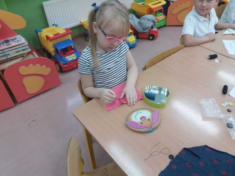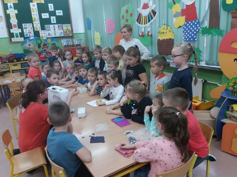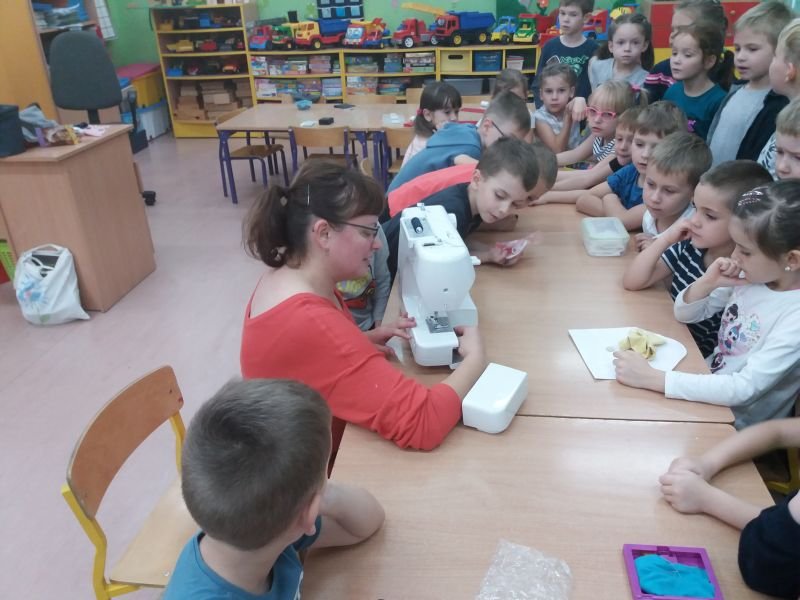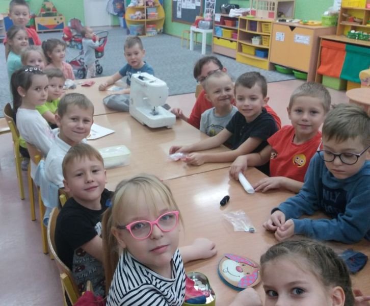 W poniedziałek 4 listopada 2019r przedszkolaki z grupy ,,Kubusie” i ,,Tygryski” dzięki uprzejmości mamy Nikodema Gracza, miały możliwość bliżej poznać zawód krawcowej. Maluchy poznały wszystkie przybory i narzędzia , które są potrzebne krawcowej do pracy. Mogły potrzymać w ręce prawdziwe nożyce krawieckie , przymierzyć naparstek na palcu i obejrzeć maszynę do szycia. Mama Nikodema nauczyła dzieci przyszywać guziki. Bardzo dziękujemy Pani Karolinie za wspaniałą lekcję krawiectwa.