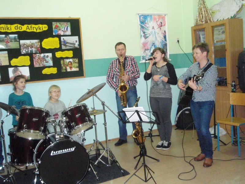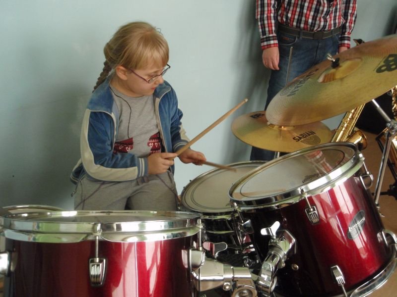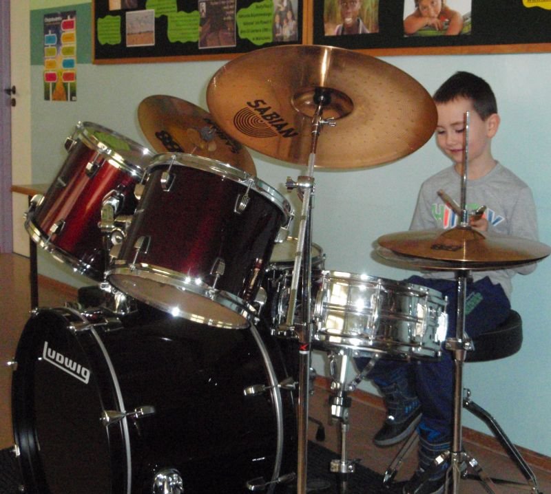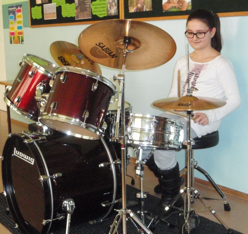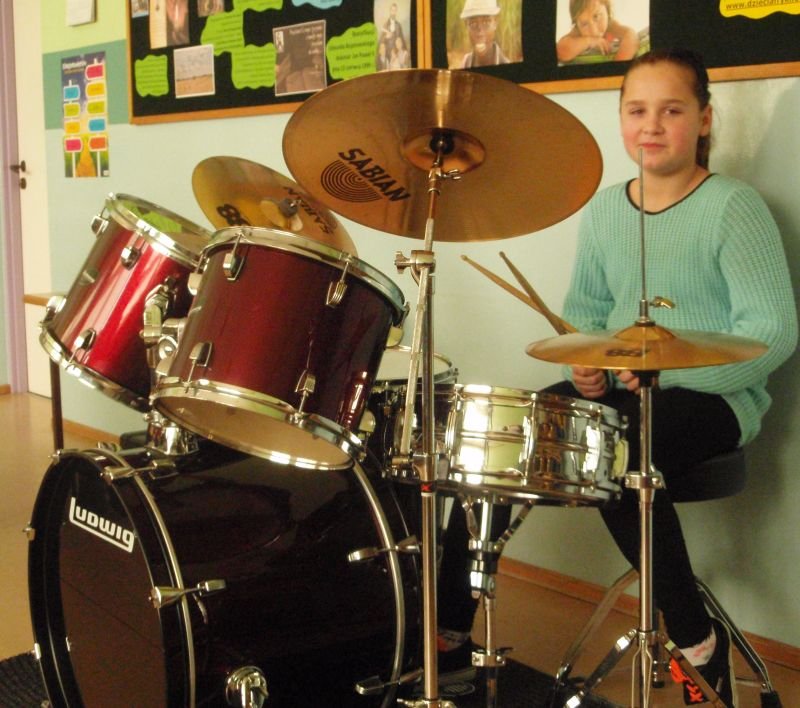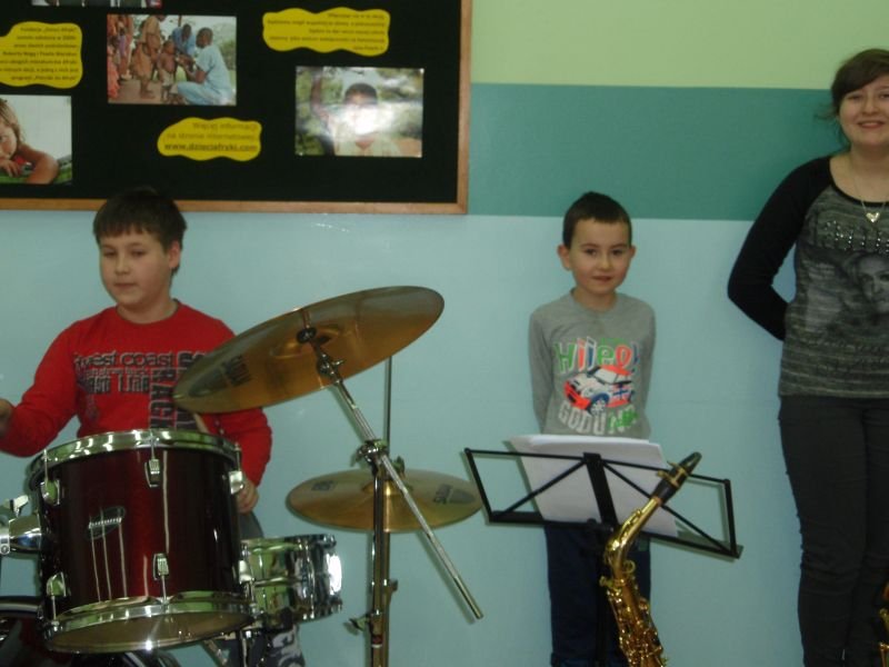 Największym jednak zainteresowaniem wśród dzieci cieszyła się perkusja. Wszyscy uczestnicy zasiadali przy niej po kilka razy, a niektóre dzieci odkryły w sobie poczucie rytmu, co może w przyszłości zaowocować chęcią nauki gry na którymś z instrumentów.