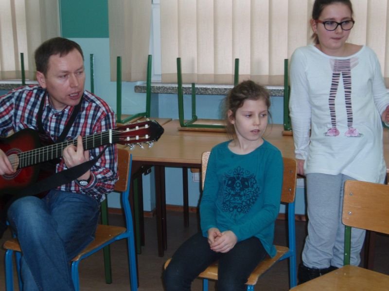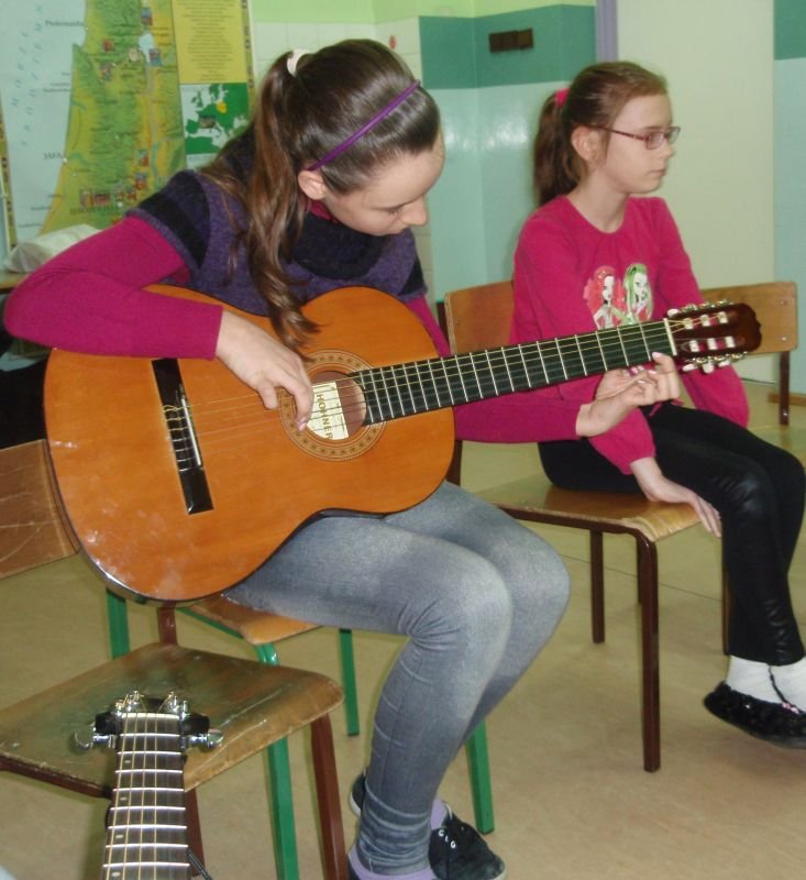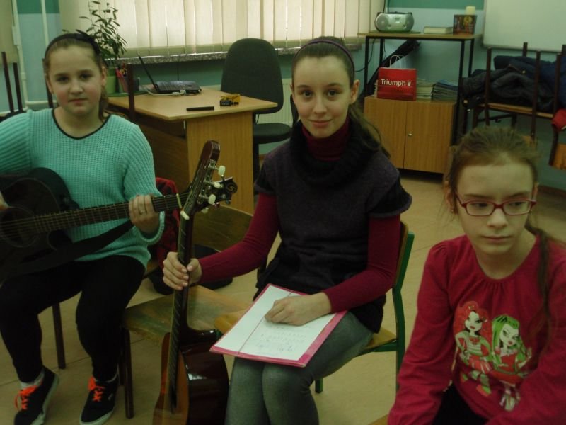 Dnia 6 lutego 2014r. w czwartek, w ramach zajęć „Ferie w szkole” w sali 305 odbyło się spotkanie z instrumentem i piosenką, które prowadzili Małgorzata i Leszek Rombel, nauczyciele naszej szkoły.