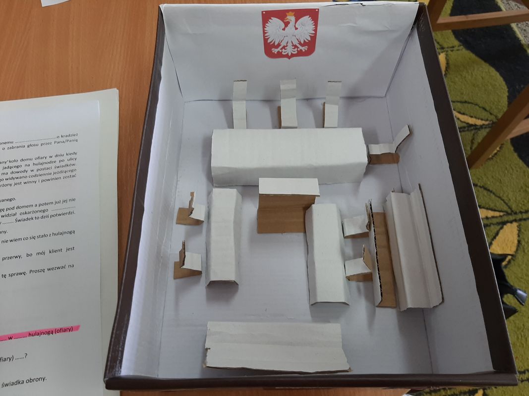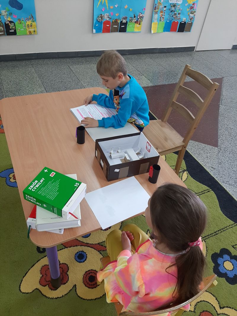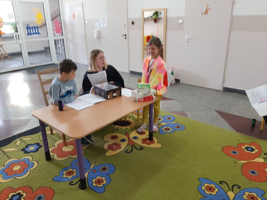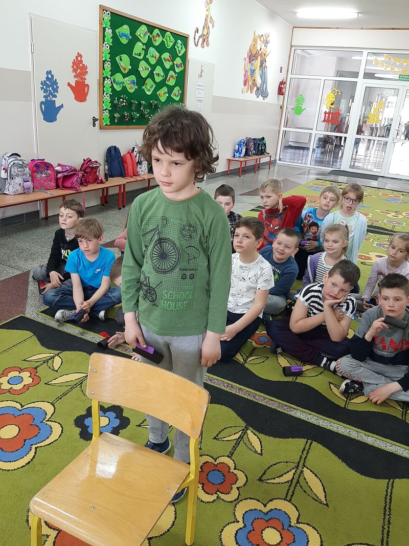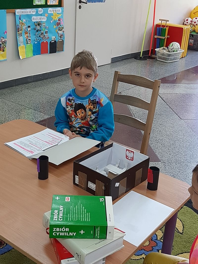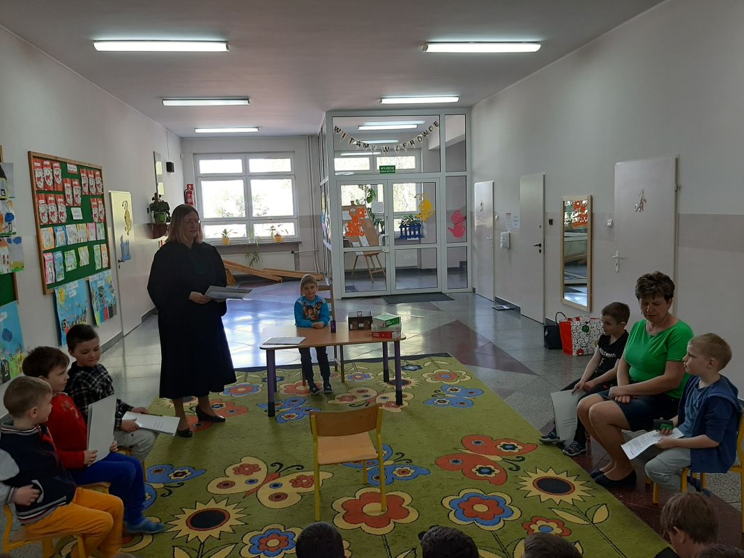 5 maja 2022r. naszą Zerówkę odwiedziła mama naszego kolegi z grypy Kubusiów - Pani Małgorzata Stobienia, która na co dzień pracuje jako adwokat w sądzie. Dzieci poznały na czym polega zawód adwokata, radcy prawnego czy sędziego. Pani przybliżyła im najważniejsze tajniki tego zawodu. Dzieci miały możliwość odbijania swoich linii papilarnych, oglądać grube książki z kodeksami prawnymi, zapoznać się z salą sądową , a także zobaczenia adwokata w stroju sądowym- todze. Największym wyzwaniem dla dzieci było wcielenie się w role pracowników sądowych (adwokat, sędzia, prokurator, protokolant, świadek, oskarżony) po to, aby odzwierciedlić toczącą się rozprawę sądową o kradzież hulajnogi. Spotkanie to było bardzo owocne, a zarazem emocjonujące. Może w przyszłości ktoś z naszych przedszkolaków wybierze zawód adwokata.