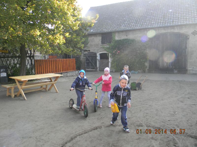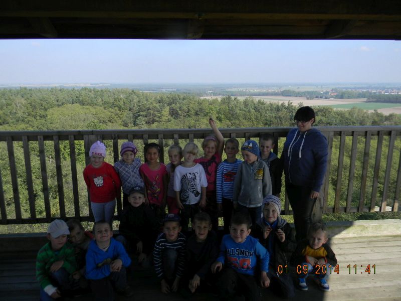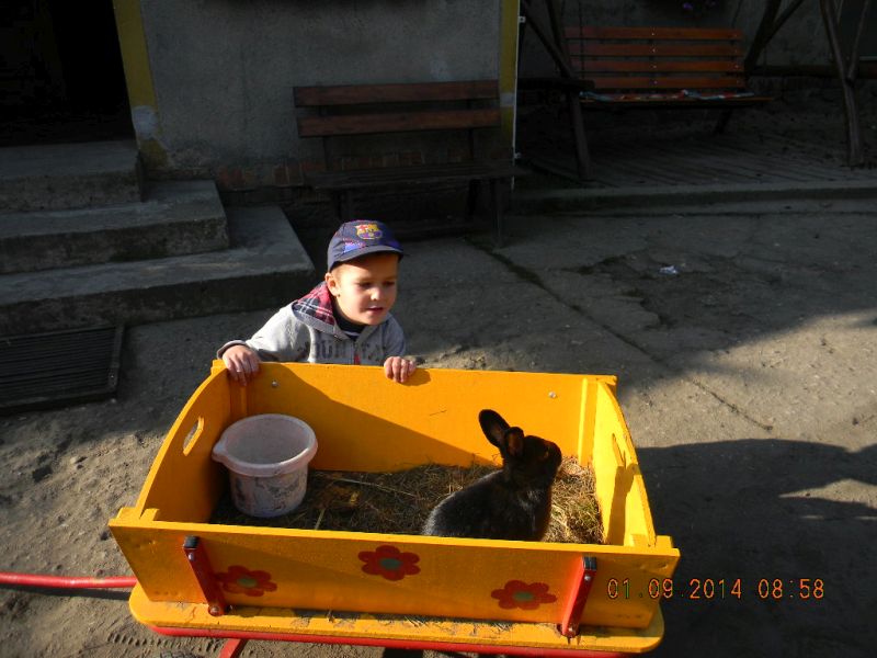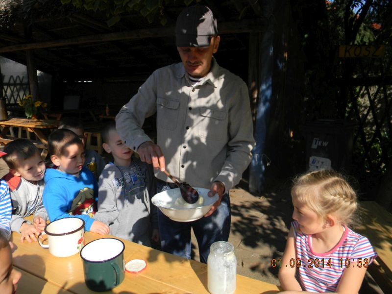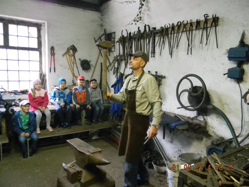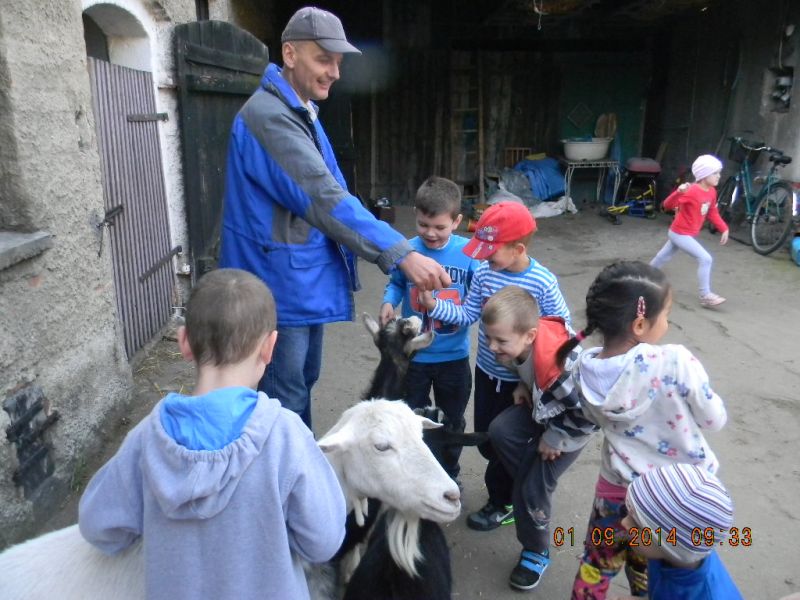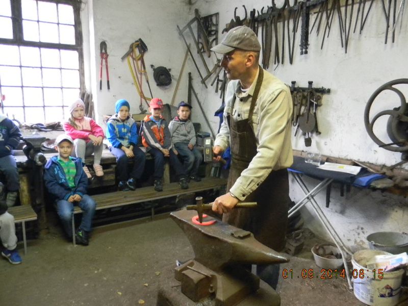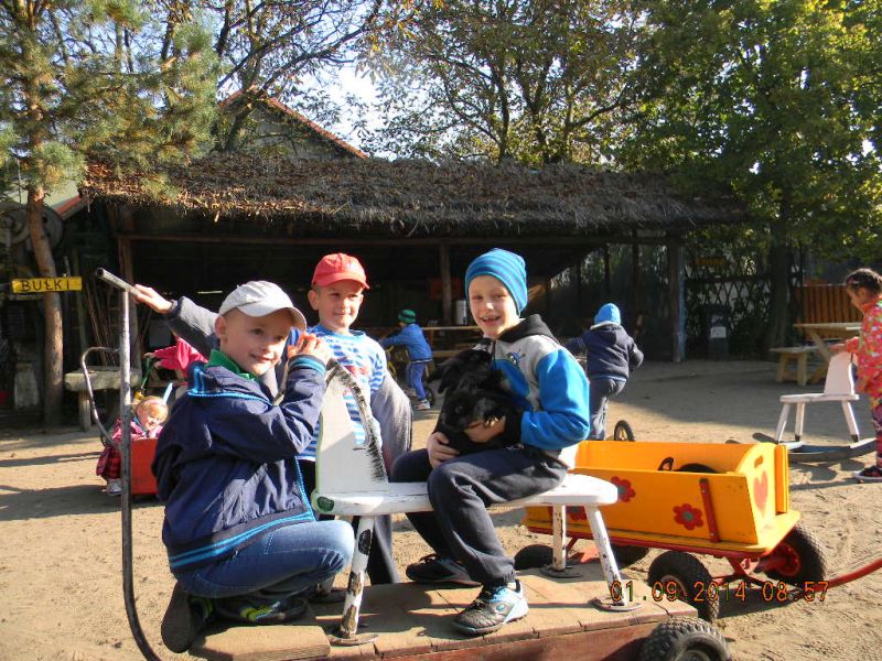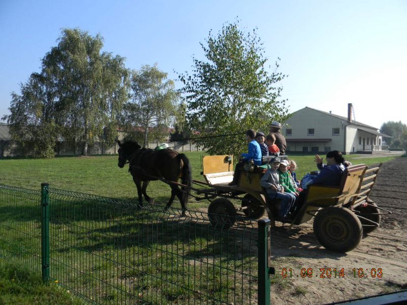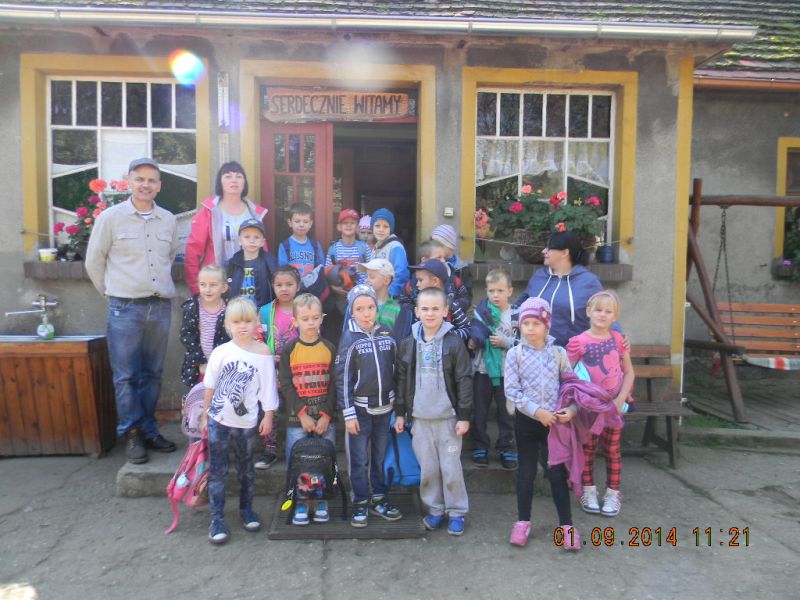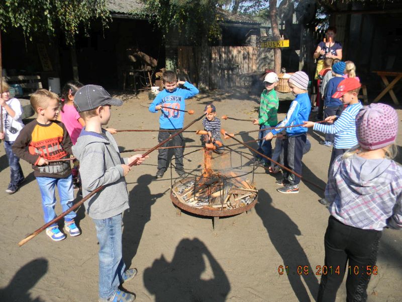 W piątek 3.10.2014r. uczniowie klasy 1c pojechali ze swoją wychowawczynią – Gabrielą Ślusarczyk i opiekunem - panią Agnieszką Skorupińską do gospodarstwa agroturystycznego „ Stara chata u kowola” , które znajduje się w Kluczewie. Wyjazd miał przede wszystkim charakter integracyjny. Dzieci mogły w ten sposób lepiej się poznać oraz nawiązać więzi koleżeńskie podczas swobodnych zabaw. Celem wycieczki była też realizacja programu adaptacyjnego dla uczniów rozpoczynających naukę w szkole. Uczniowie mogli poza salą lekcyjną poznawać najbliższe otoczenie. Lekcje w terenie są jedną z najlepszych form nauki dla uczniów w młodszym wieku szkolnym. Od samego początku wycieczki wszystkim dopisywał humor, a uśmiech z twarzy dzieci nie znikał prawie wcale. W dużej mierze przyczyniła się do tego postać wujka Krzysia- gospodarza domu, który w zabawny sposób przedstawiał gwarą wielkopolską walory swojego gospodarstwa. Pokazał nam kuźnię, a w niej proces powstawania podkowy, żelazko z duszą, dał koncert młotkami na kowadle oraz zademonstrował mistrzowskie uniesienie olbrzymiego młotka na jednym palcu. Zapoznawał uczniów z etapami powstawania wełnianego sweterka i rękawiczek. Opowiadał o swoich zabawach i zabawkach z dzieciństwa. Później na wiejskim podwórku dzieci mogły bawić się tymi zabawkami w otoczeniu królików, kotów, kóz, owiec. Widziały dojenie krowy i kozy. Obserwowały proces powstawania masła. Jeździły powózką z końmi wokół leśnych zagajników. Bawiły się na pięknym placu zabaw w Kluczewie. Zbierały na polu pyry. Podczas takich intensywnych zajęć nie mogło zabraknąć jedzenia i picia. Rolę gospodyni domu pełniła ciocia Anetka, która częstowała nas pysznymi rogalikami, zorganizowała pieczenie kiełbasek, gotowała herbatę. Tym wszystkim wesołym przeżyciom towarzyszyła piękna jesienna pogoda. W drodze do szkoły zatrzymaliśmy się w okolicy Siekowa, żeby wejść na znajdującą się tam wieżę widokową skąd mogliśmy podziwiać piękne widoki naszej okolicy. Po takich ekscytujących przeżyciach wróciliśmy do szkoły. Byliśmy bardzo zmęczeni, ale bogatsi o nowe doświadczenia.