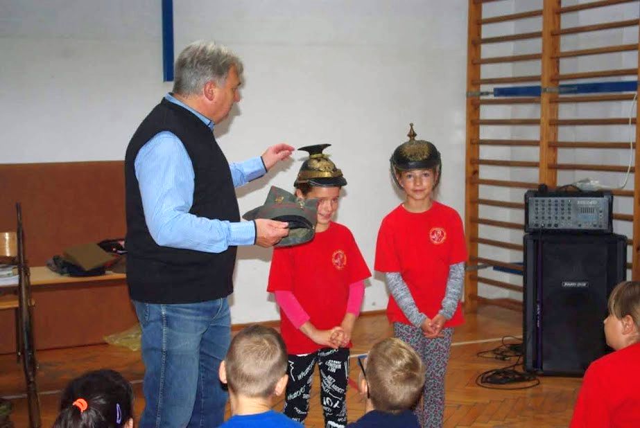 Niecodziennie zdarza się dzieciom zobaczyć i dotknąć historyczne eksponaty. Taką możliwość stworzyła uczniom naszej szkoły Grupa Rekonstrukcji Historycznej Grätz z Grodziska Wielkopolskiego, która w ciekawy sposób zaznajomiła ich z czasami powstania wielkopolskiego. W piątek 26 października, w ramach środków otrzymanych z projektu edukacyjnego Ministra Edukacji Narodowej „Godność, wolność, niepodległość”, odbyły się w naszej szkole warsztaty historyczne. Członkowie grupy oraz przedstawiciele Towarzystwa Miłośników Ziemi Grodziskiej opowiadali uczniom o powstaniu wielkopolskim. Prezentowali również wiele ciekawych eksponatów z tamtego okresu m.in. broń i umundurowanie. Pozostawili w szkole także publikacje wydane z okazji 100. rocznicy odzyskania niepodległości: okolicznościowe pocztówki oraz książki „Powstanie wielkopolskie na ziemi grodziskiej 1918 – 1919” autorstwa Dariusza Matuszewskiego.