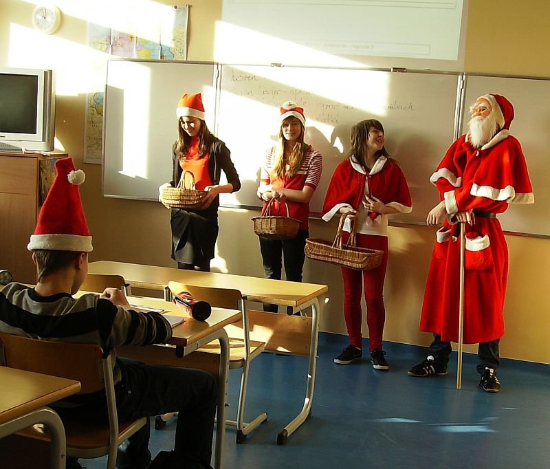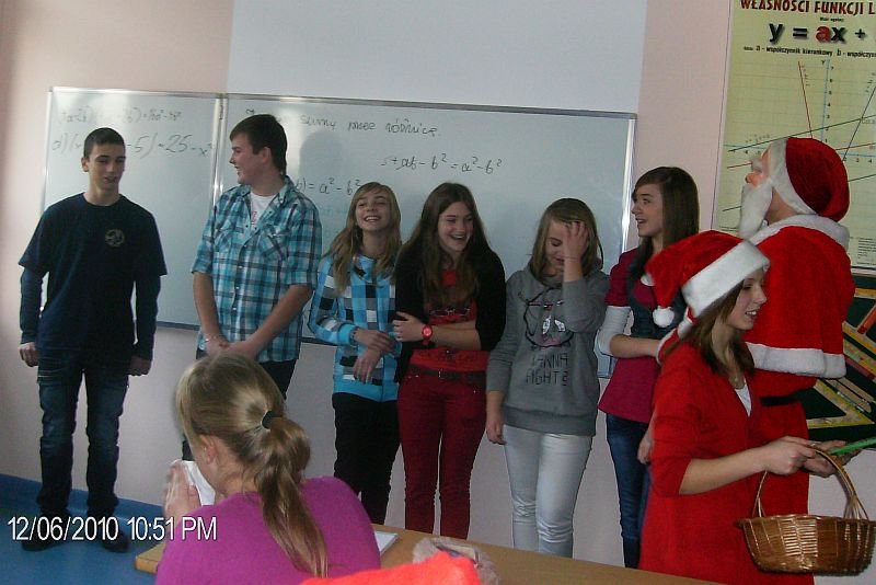 Dzięki Radzie Rodziców 6 grudzień w naszej szkole upłynął pod znakiem św. Mikołaja. Każdy uczeń otrzymał słodki prezent. W rolę św. Mikołaja i jego pomocników wcielili się członkowie Samorządu Uczniowskiego Gimnazjum: Grzegorz Piątek (Mikołaj nr 1), Jakub Marciniak (Mikołaj nr 2), Klaudia Wojtkowiak, Ewa Szymańska, Nikola Bukowska, Patrycja Ziemkowska, Joanna Nowak, Dominika Wawrzyniak, Natalia Perek (Mikołajki), Ryszard Giernaś (fotograf).