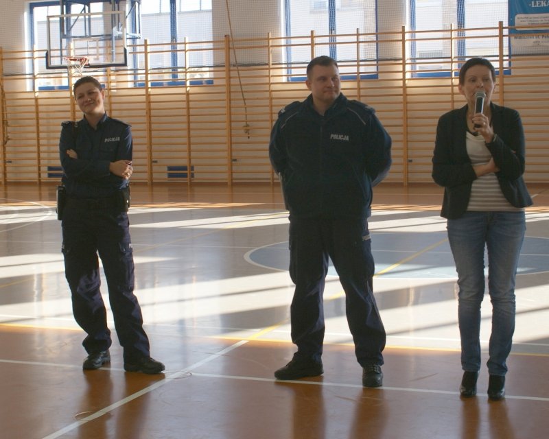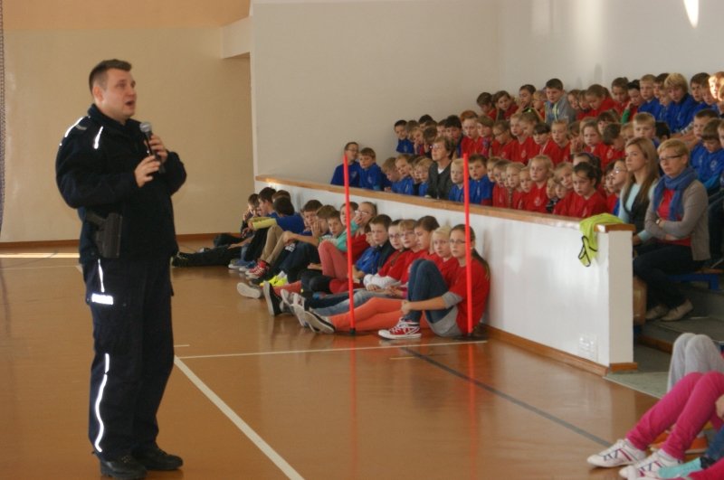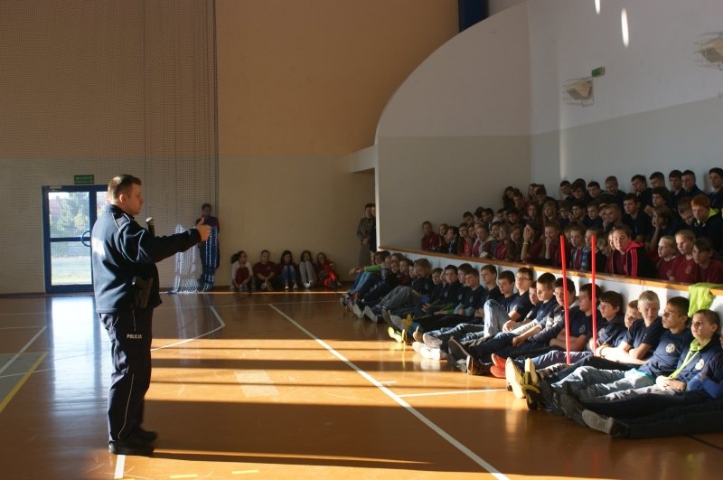 Policjanci przeprowadzili prelekcję dla uczniów szkoły podstawowej oraz gimnazjum na temat bezpieczeństwa w szkole i w ruchu drogowym oraz odpowiedzialności karnej nieletnich. Znaleźli oni także czas na to, by przywitać się z najmłodszymi przedstawicielami naszej szkoły- dziećmi oddziału przedszkolnego.