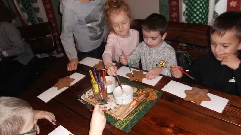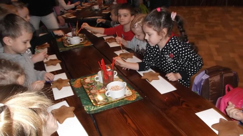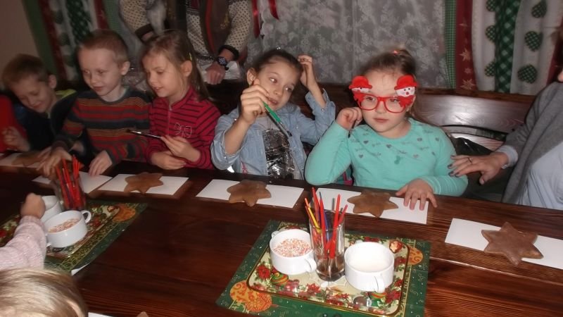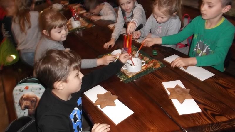 4 grudnia dzieci z oddziałów  przedszkolnych wybrały się do Kościana na spotkanie z Mikołajem. Maluchy zapoznały się z tradycjami Świąt Bożego Narodzenia. Wśród atrakcji przygotowanych dla naszych milusińskich znalazło się: ozdabianie pierniczków, śpiewanie kolęd i pobyt na placu zabaw ,,Nufrik”.  Mikołaj przywitał dzieci w  swojej świątecznej siedzibie, gdzie każde dziecko mogło z nim porozmawiać i wyszeptać na ucho swoje największe marzenie. Na pożegnanie maluchy otrzymały drobne upominki. Imprezie towarzyszyła miła i magiczna atmosfera. Dzieci wróciły uśmiechnięte do domów, z nadzieją odnalezienia wymarzonego prezentu pod choinką w wigilijną noc.