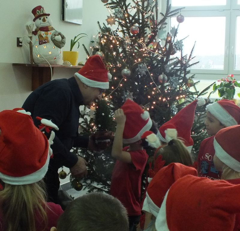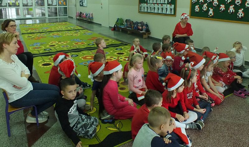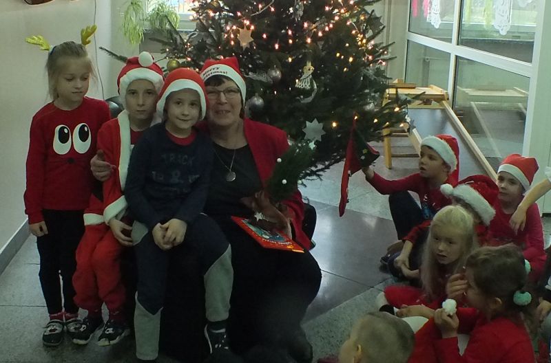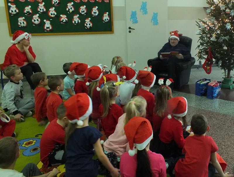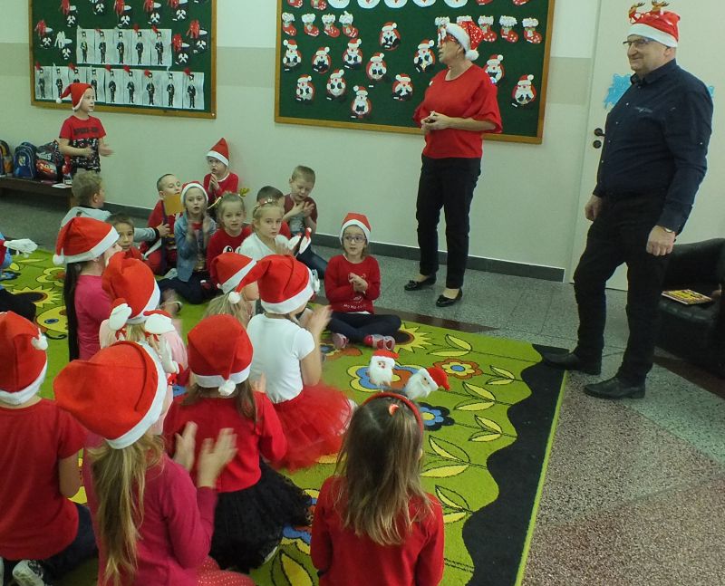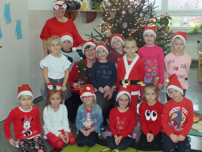 Wzorem lat ubiegłych 6 grudnia w oddziale przedszkolnym odbyło się mikołajkowe spotkanie dwóch pokoleń przy choince pod hasłem: „Poczytaj Mi Babciu, Poczytaj Mi Dziadku.” Zaproszenie na to spotkanie przyjęli: Pani Genowefa Feldgebel, babcia Benedykta, która przeczytała bajkę pt. ”Opowieść o prawdziwym świętym Mikołaju” oraz Pan Henryk Nowak, dziadek Oliviera, który zapoznał dzieci z bajką pt. „Przyjaciel z piernika”. Na spotkaniu nie zabrakło również słodkości, którymi zostały obdarowane przedszkolaki przez zaproszonych gości. Ich występy młodzi słuchacze nagrodzili gromkimi brawami oraz miniaturami choinek.