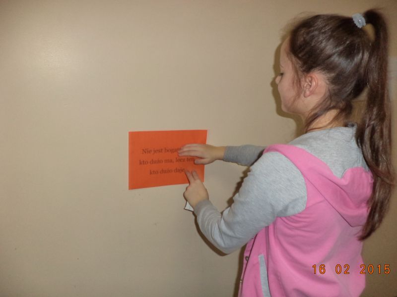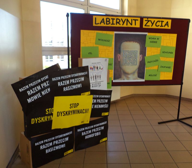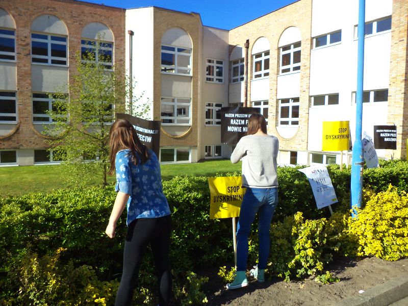 Kolejnym działaniem było rozwieszenie w budynku szkoły plakatów z sentencjami, zdaniami nawiązującymi do ponadczasowych wartości takich jak: tolerancja, przyjaźń, szacunek. Miało to na celu pobudzenie uczniów do refleksji na temat dyskryminacji.