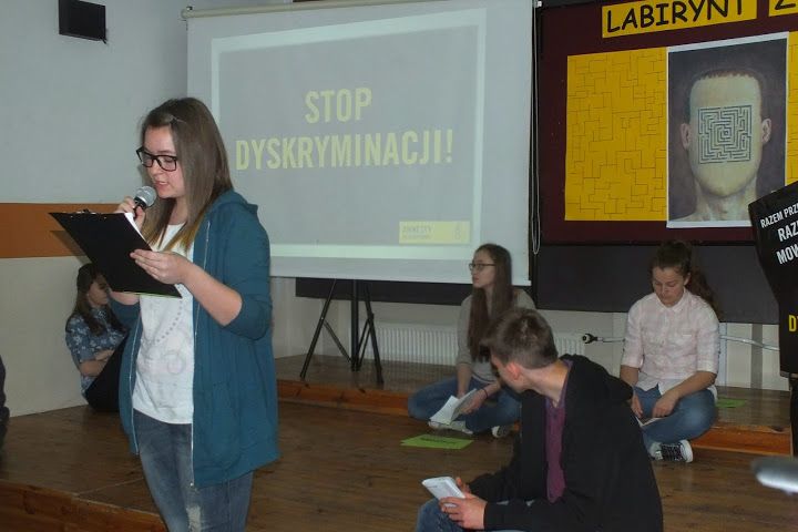 Grupa projektowa z gimnazjum pod opieką pani pedagog Danuty Ilmer oraz pani Andżeliki Barańskiej 7 maja przedstawiła społeczności szkolnej efekty wypracowane na spotkaniach zatytułowanych: „Szanuj to, co trwa dłużej niż ludzie”. Były to zajęcia w ramach współpracy naszego gimnazjum ze Stowarzyszeniem Amnesty International. Gimnazjaliści w ramach projektu poświęconemu dyskryminacji, w grudniu odwiedzili Zakład Poprawczy w Grodzisku Wielkopolskim. Mieli możliwość wejścia do świata chłopców, którzy z jakichś powodów pogubili się w życiu i odbywają karę w Zakładzie.