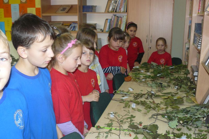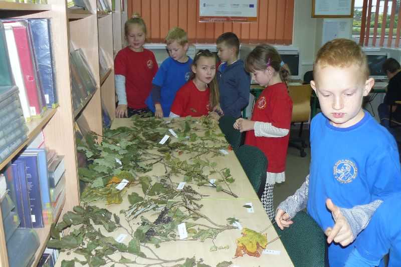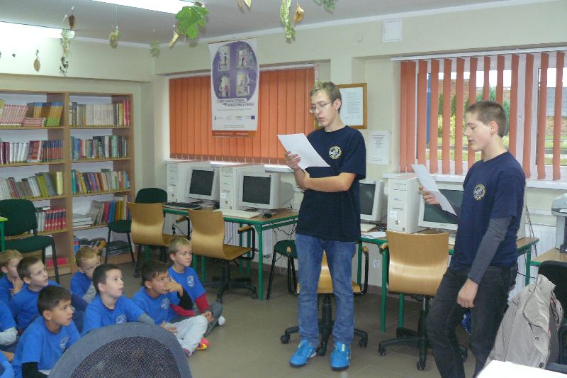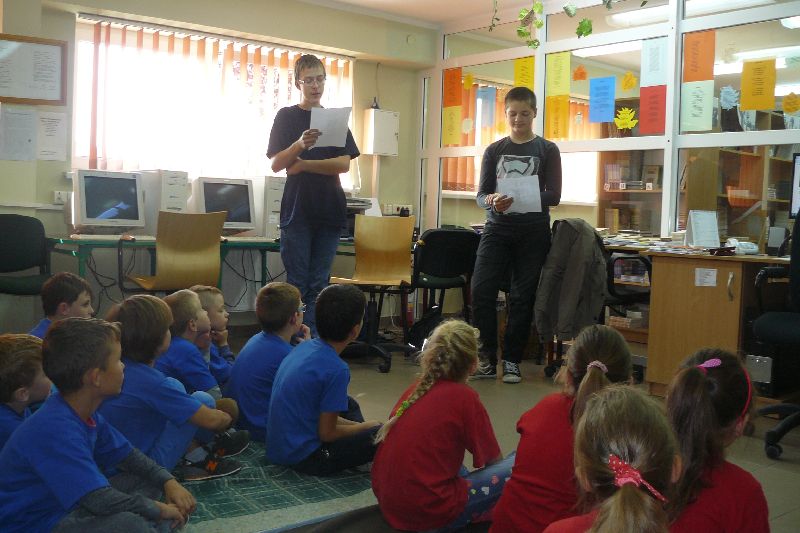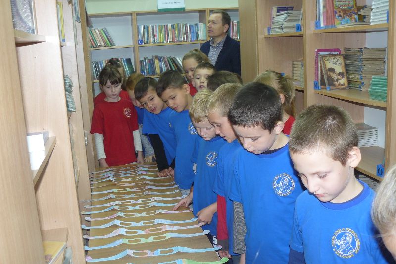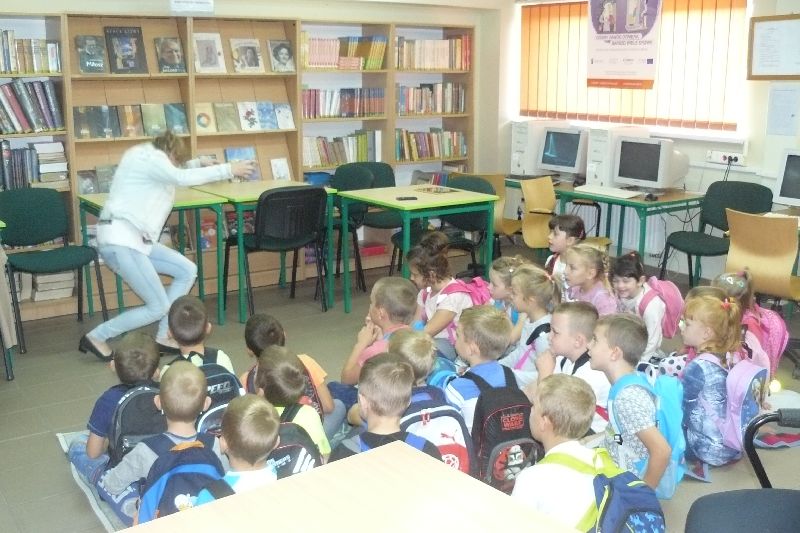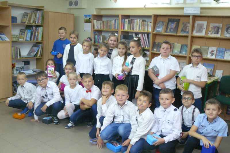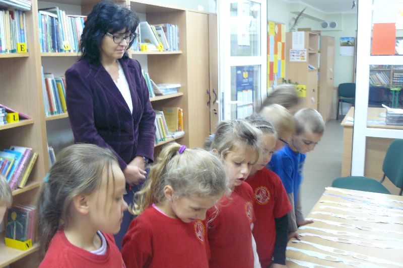 W tym roku Międzynarodowy Miesiąc Bibliotek Szkolnych był obchodzony pod hasłem „Październikowe wierszobranie.” W pierwszym tygodniu października bibliotekę odwiedziły dzieci z oddziału zerowego. Uczniowie z Koła bibliotecznego zaprezentowali im wiersz pt. „Pan Hilary” J. Brzechwy. Wychodząc z biblioteki, każdy uczeń zerówki otrzymał szablon okularów, który następnie wszyscy pokolorowali i przynieśli na wystawę do biblioteki. W drugim tygodniu uczniowie mogli się zapoznać z wystawą materiału przyrodniczego, na który składały się różnego rodzaju liście i gałęzie z okolicznych lasów, pól, łąk i ogrodów. Dla klas 1-3 szkoły podstawowej uczniowie z Koła bibliotecznego przygotowali wiersz „Dwa wiatry” J. Tuwima. Osoby odwiedzające w tych dniach bibliotekę mogły wziąć udział w konkursie dotyczącym wierszy J. Tuwima, zwycięzcy zostali nagrodzeni.