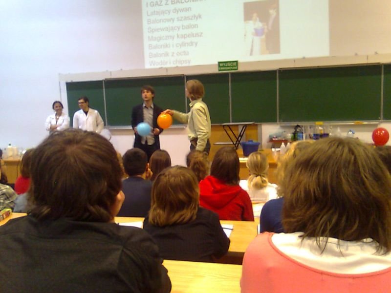 Poza wspomnianym grzybem, wielichowscy gimnazjaliści ? których pasją do eksperymentowania zaraziła nauczycielka chemii, Magdalena Glapiak-Skrzypczak - mieli okazję podziwiać również balonowy szaszłyk, jak też wiele innych zadziwiających zjawisk. Warto dodać, iż eksperymenty, którym przyglądali się uczestnicy, przeprowadziła m.in. prof. H.Gulińska, współautorka podręcznika "Ciekawa chemia", z którego korzystają gimnazjaliści z Wielichowa. Jeśli chemiczne pasje są zaraźliwe, być może jeden lub drugi Maciej zechce w przyszłości zawodowo badać otaczający nas, niezwykły świat.
