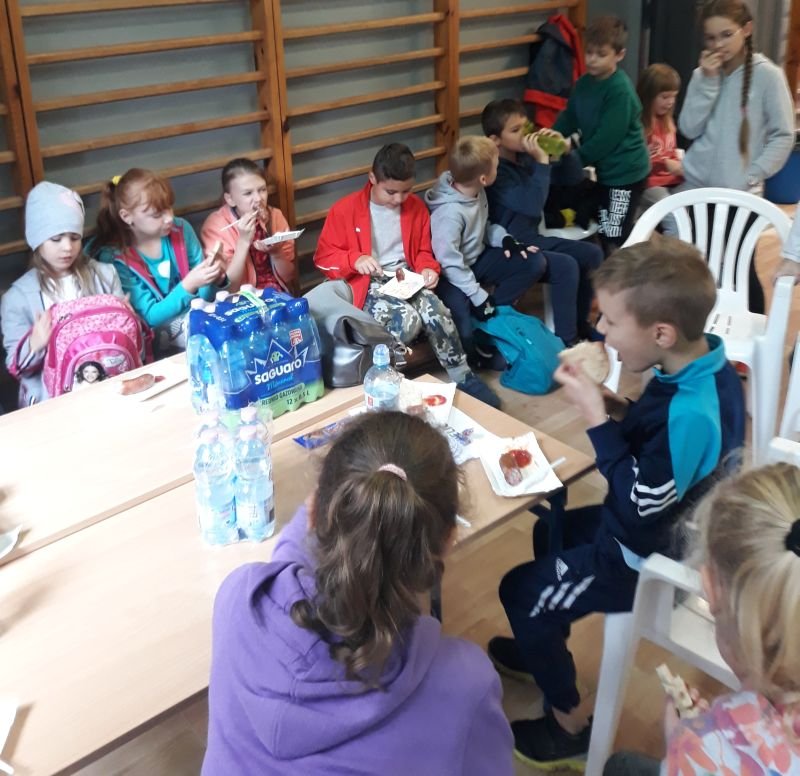 Po odbytych zawodach, dla zregenerowania sił na uczestników czekały napoje, coś słodkiego oraz kiełbaska z grilla. Atrakcją dla dzieci była zabawa kolorowym proszkiem