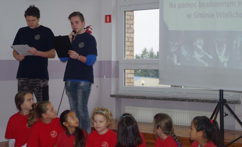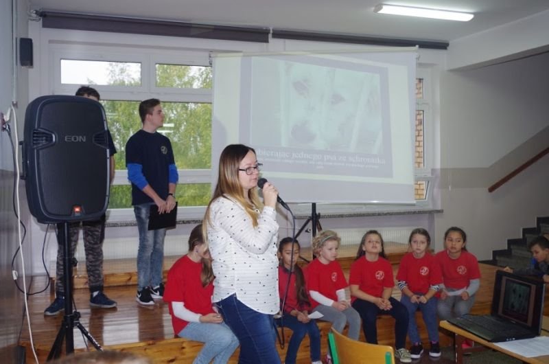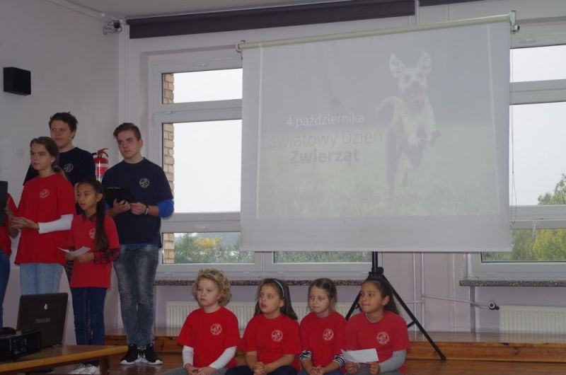 4 października przypada Światowy Dzień Zwierząt, z tej okazji w naszej szkole odbył się apel przygotowany przez wolontariuszy Przytuliska dla psów w Wielichowie. Młodzi ludzie opowiedzieli skąd się biorą bezdomne zwierzęta w przytuliskach i schroniskach i jak sprawić żeby niechcianych zwierząt było mniej, zaprezentowali psy przebywające aktualnie w przytulisku w Wielichowie. Wolontariusze mówili również o tym jak oni pomagają bezdomnym psom. Na spotkaniu została ogłoszona zbiórka i do 19 października można przynosić prezenty dla psów z przytuliska: jedzenie, zabawki, obroże i smycze, ciepłe koce itp. Mamy nadzieję, że może w którejś rodzinie znajdzie się miejsce dla jednego z naszych czworonożnych pupili, które ciągle polecamy do adopcji.