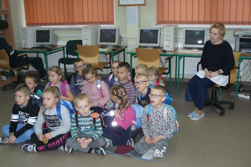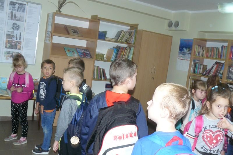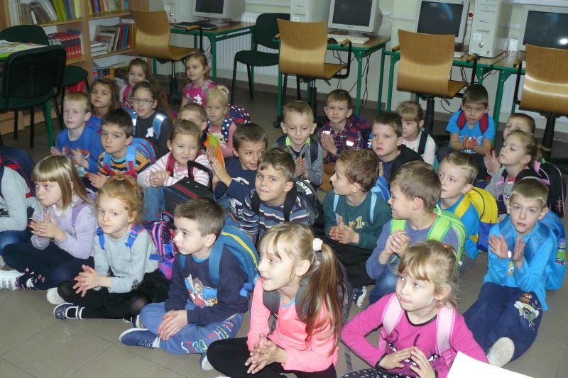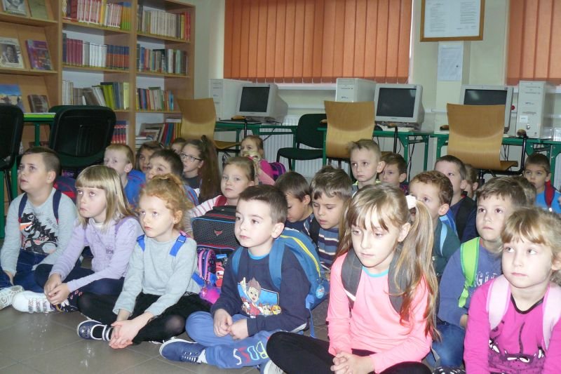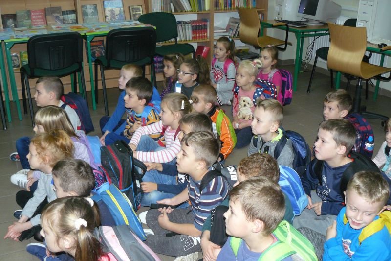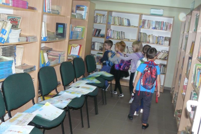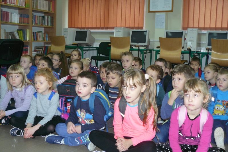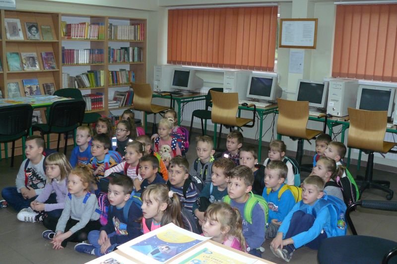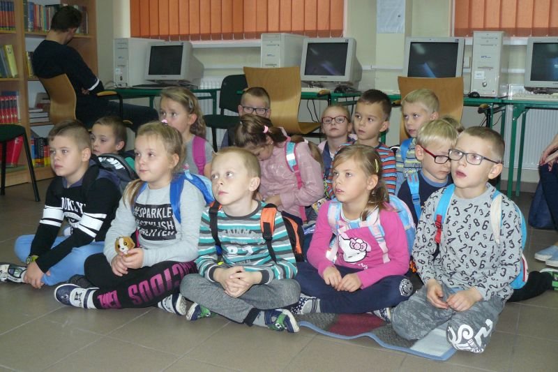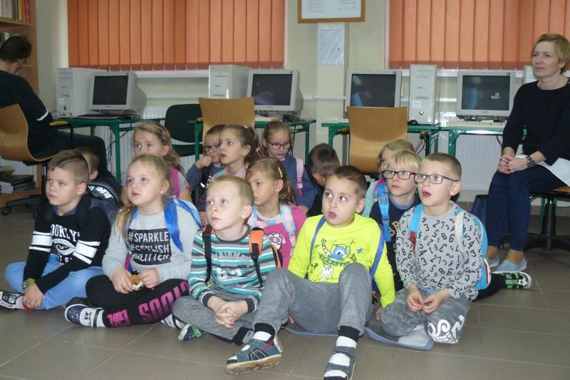 Na początku listopada bibliotekę odwiedziły dzieci z oddziałów zerowych. Uczniowie z koła bibliotecznego przygotowali dla nich na powitanie wiersz Juliana Tuwima pt. „Lokomotywa”. Dzieci zapoznały się ze zbiorami biblioteki, dowiedziały się gdzie stoją książki przeznaczone dla nich oraz co należy zrobić, aby daną książkę można było wypożyczyć do domu.