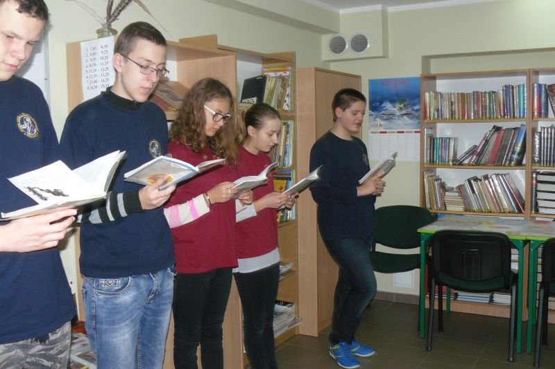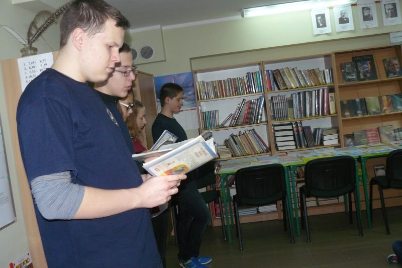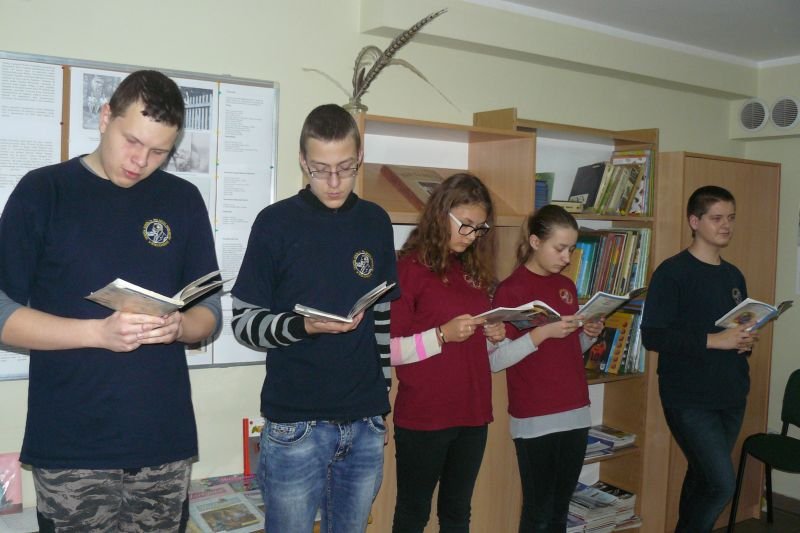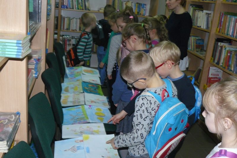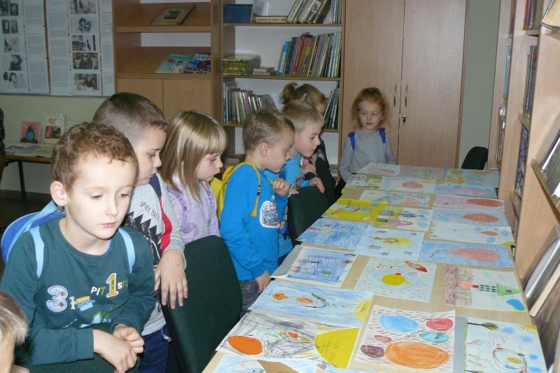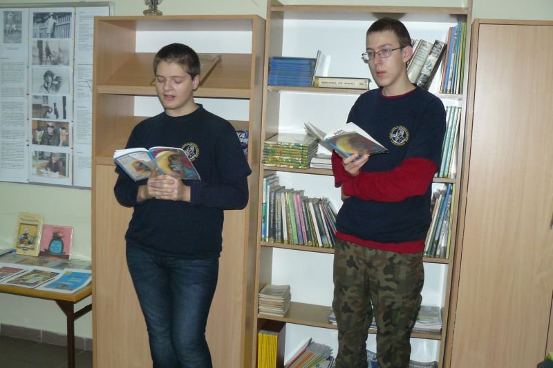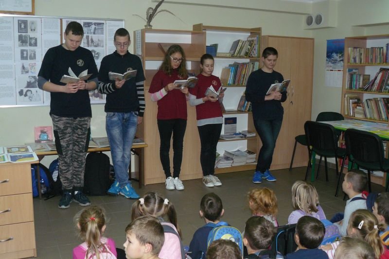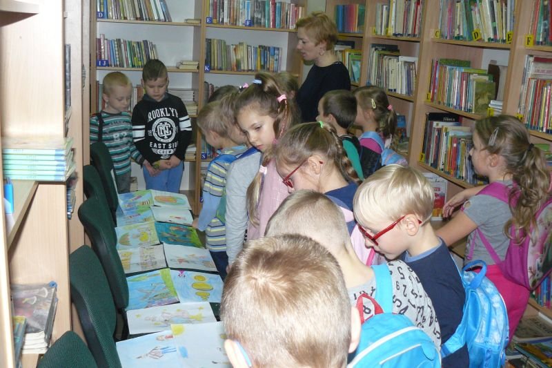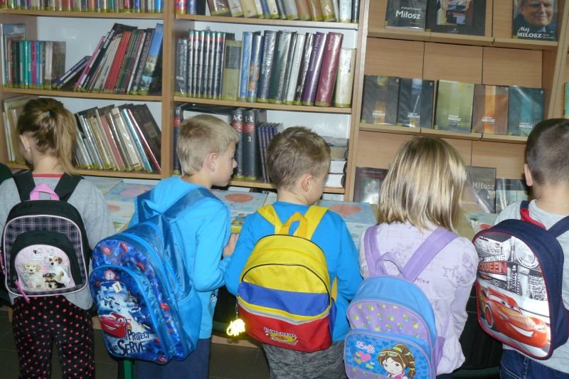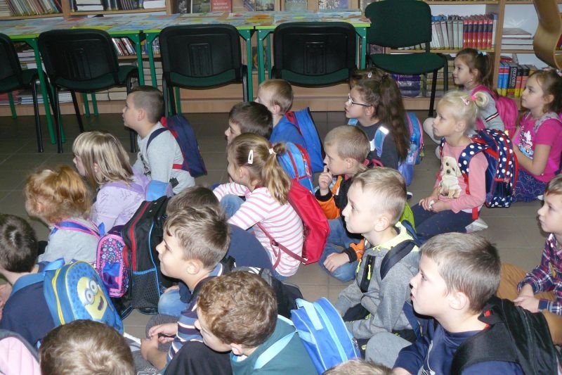 Na początku listopada bibliotekę odwiedziły dzieci z oddziałów zerowych. Uczniowie z koła bibliotecznego przygotowali dla nich na powitanie wiersz Juliana Tuwima pt. „Lokomotywa”. Dzieci zapoznały się ze zbiorami biblioteki, dowiedziały się gdzie stoją książki przeznaczone dla nich oraz co należy zrobić, aby daną książkę można było wypożyczyć do domu.