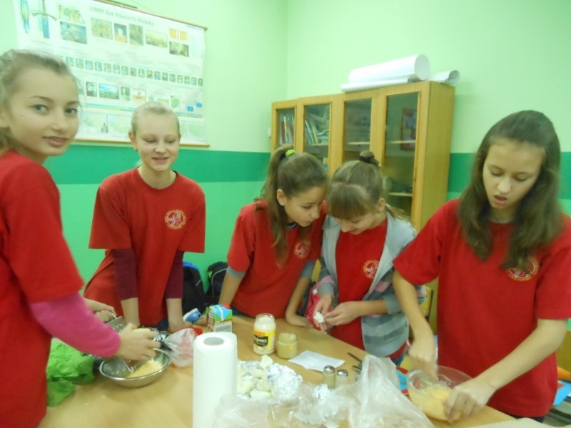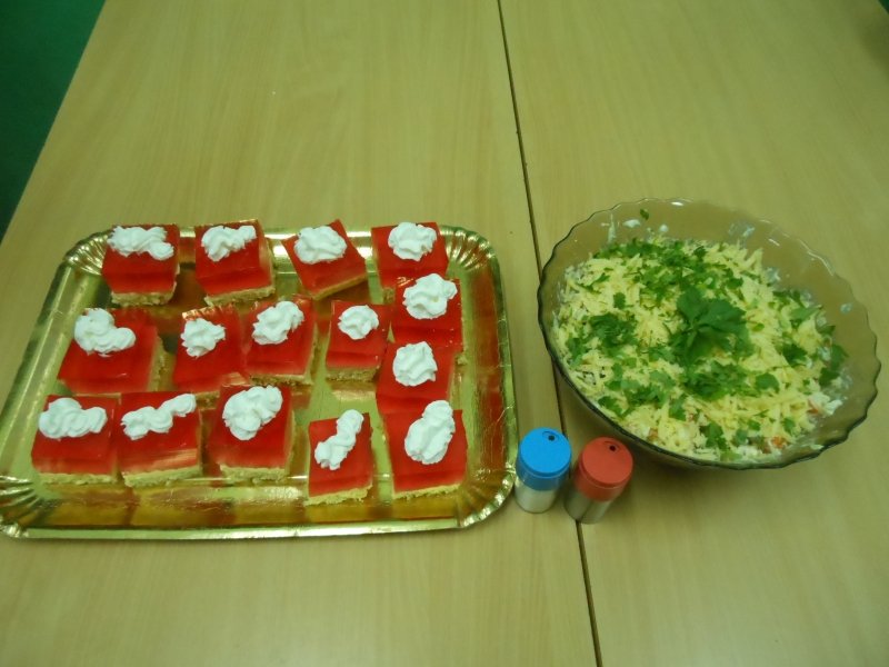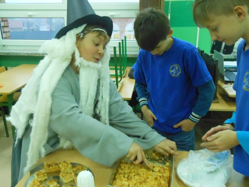 Szarlotka z bitą śmietaną, ptasie mleczko, ciasteczka z dżemem malinowym, sałatka z pieczarkami oraz faszerowane jajka to potrawy, których można było skosztować na uczcie przygotowanej przez uczniów klasy 6a. Nietypowa lekcja języka polskiego, mająca charakter biesiady, była podsumowaniem cyklu zajęć, na których omawiano powieść J.R.R. Tolkiena pt. „Hobbit, czyli tam i z powrotem”.