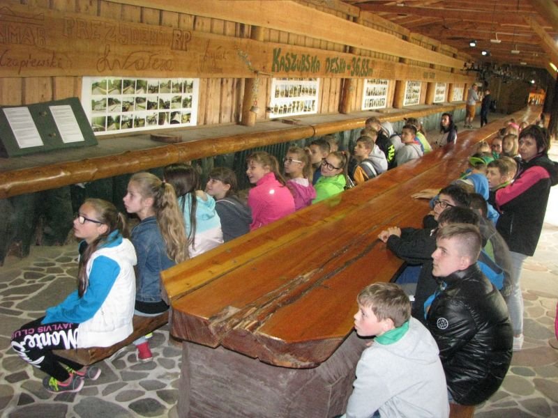 Realizację planu naszej wycieczki zaczęliśmy od zwiedzania miejscowości Szymbark, wsi położonej w sercu Kaszubskiego Parku Krajobrazowego. Mieliśmy tam okazję poznać historię, język oraz kulturę Kaszub. Poza ciekawymi i ważnymi informacjami o Kaszubach, ich tradycji i zwyczajach, mogliśmy zobaczyć między innymi: „dom stojący do góry nogami”, Dom Sybiraka, Bunkier Gryfa Pomorskiego oraz największy grający fortepian. Zobaczyliśmy także najdłuższą deskę świata i mieliśmy okazję zasiąść wspólnie przy najdłuższym stole na świecie. Następnie pojechaliśmy do Gdańska, gdzie czekała na nas pani przewodnik, z którą dojechaliśmy na Westerplatte. Jest to symbol II wojny światowej oraz odwagi polskich obrońców wybrzeża we wrześniu 1939 r. Nasz przewodnik, pokazał nam Cmentarz Żołnierzy Wojska Polskiego (Cmentarzyk Poległych Obrońców Westerplatte), Pomnik Obrońców Wybrzeża oraz pomnik z napisem „Nigdy więcej wojny”. Kolejnym etapem naszej wyprawy było zwiedzanie Starego Miasta i nabrzeża portowego. Przeszliśmy przez Zieloną Bramę, podążając Drogą Królewską zwiedziliśmy: Dwór Artusa, Złotą Kamieniczkę, Fontannę Neptuna , Stary Żuraw, Kościół Mariacki. Pokonaliśmy 410 stopni prowadzących na wieżę Kościoła Mariackiego - największej ceglanej, gotyckiej świątyni w Europie, której wysokość wynosi 78 m.