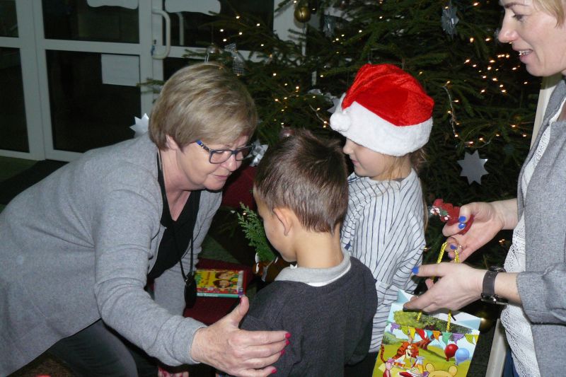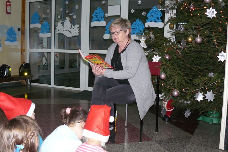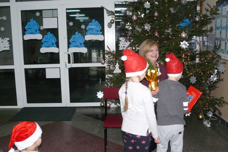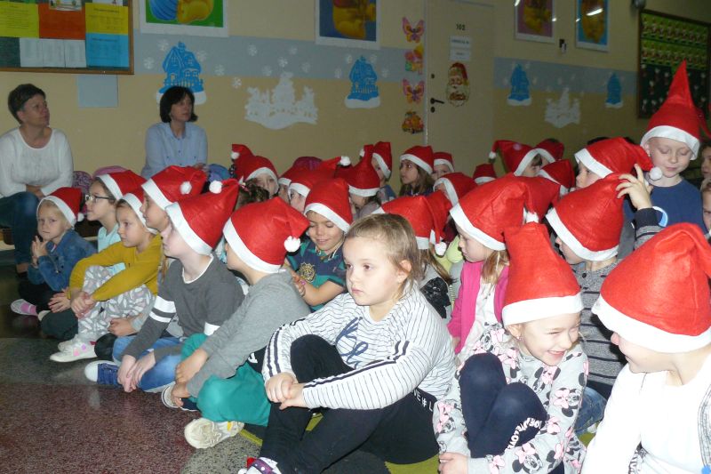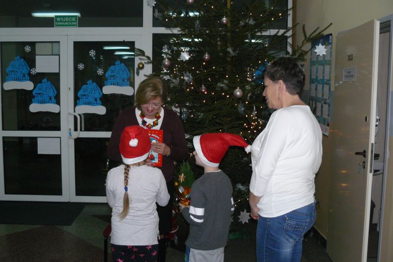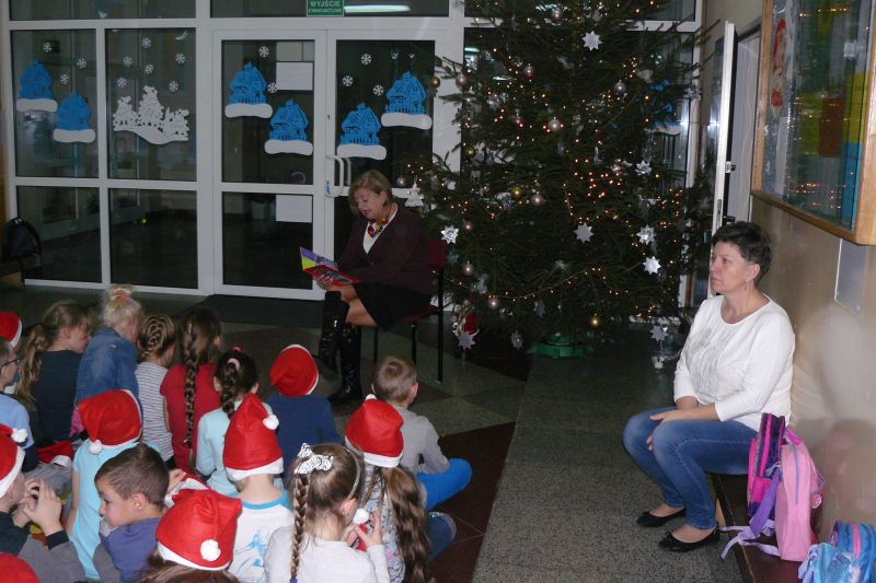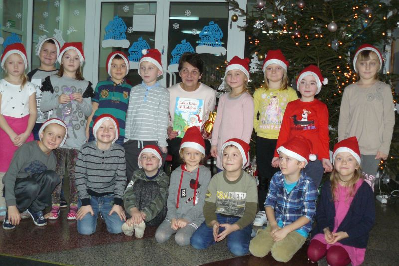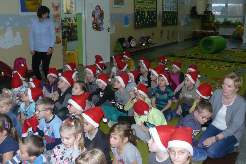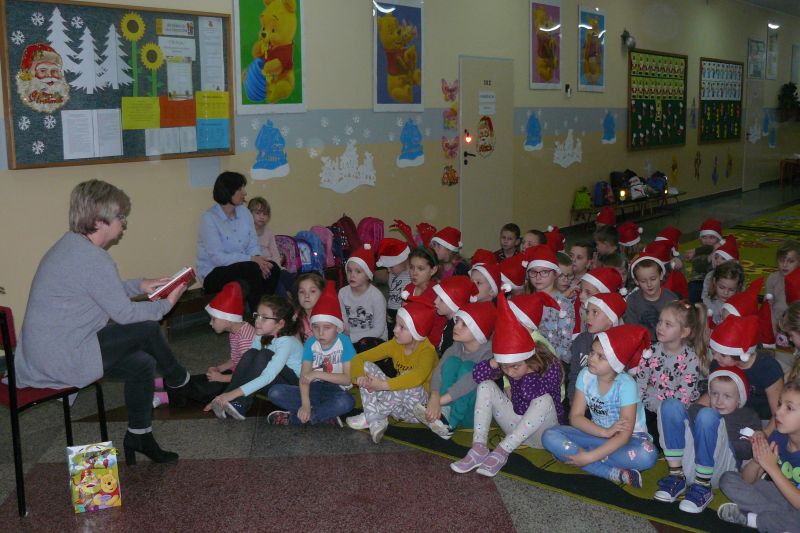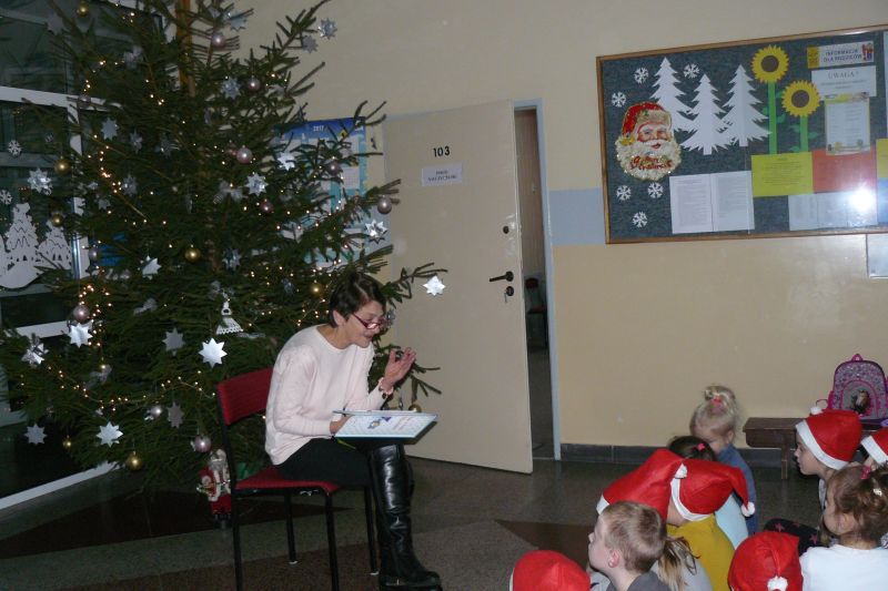 . Zaproszenie na to spotkanie przyjęły: pani Małgorzata Majewska, babcia Sebastiana Piosika pani Hanna Szczepańska, babcia Bartka Szczepańskiego i pani Jolanta Zalesińska babcia Emila Kaczmarka. Przy choince goście przeczytali między innymi opowiadania pt. „Opowieść o worku z prezentami”, „Opowieść o prawdziwym Świętym Mikołaju” oraz „Zagubiony list”. Dzieciom bardzo podobało się to mikołajkowe spotkanie, a zaproszonych gości nagrodzili gromkimi brawami oraz miniaturami drzewek choinkowych.