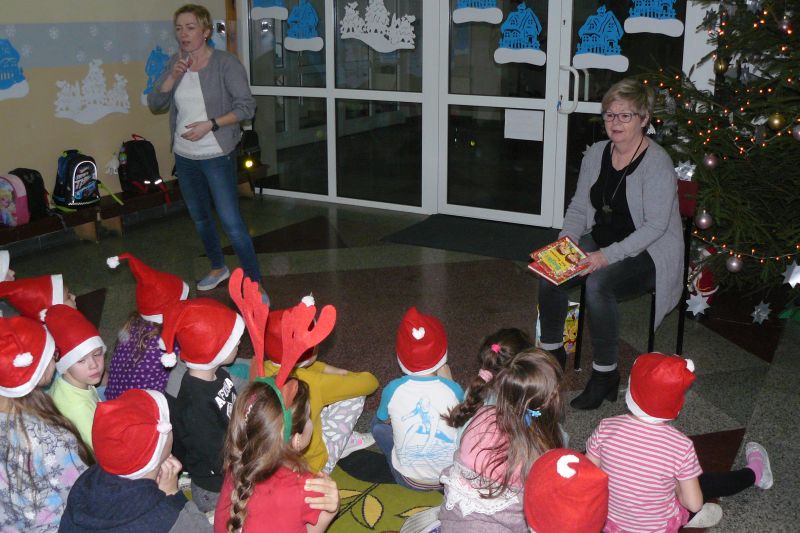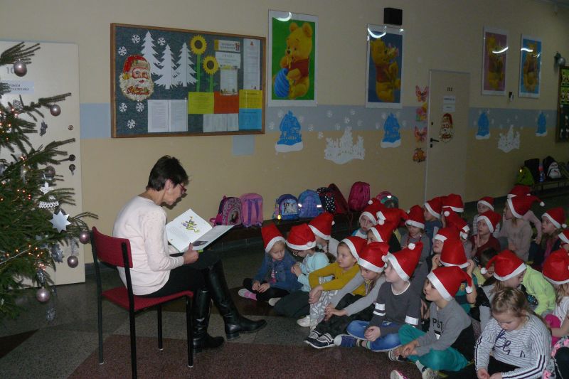 6 grudnia w oddziale przedszkolnym miało miejsce mikołajkowe spotkanie pod hasłem: ”POCZYTAJ MI BABCIU, POCZYTAJ MI DZIADKU”. Zaproszenie na to spotkanie przyjęły: pani Małgorzata Majewska, babcia Sebastiana Piosika pani Hanna Szczepańska, babcia Bartka Szczepańskiego i pani Jolanta Zalesińska babcia Emila Kaczmarka. Przy choince goście przeczytali między innymi opowiadania pt. „Opowieść o worku z prezentami”, „Opowieść o prawdziwym Świętym Mikołaju” oraz „Zagubiony list”. Dzieciom bardzo podobało się to mikołajkowe spotkanie, a zaproszonych gości nagrodzili gromkimi brawami oraz miniaturami drzewek choinkowych.