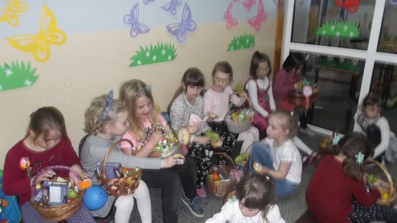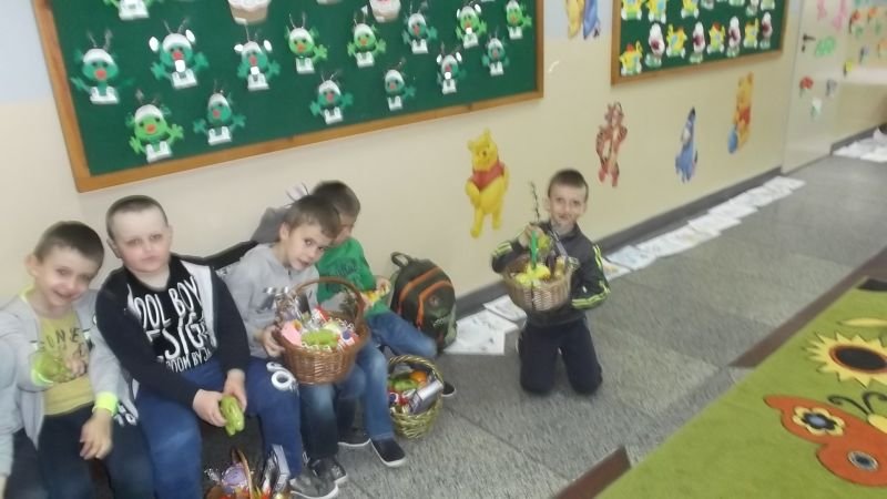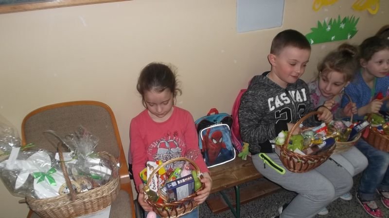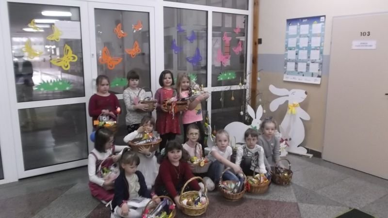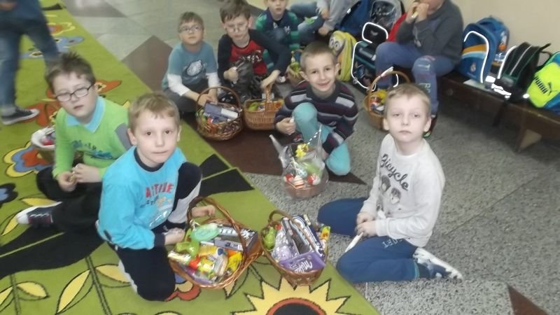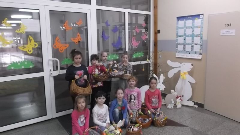 12 kwietnia 2017r dzieci z oddziałów przedszkolnych w Wielichowie odwiedził Zajączek.Mimo niesprzyjającej pogody dzieci mogły poszukać swoich koszyczków nie na łące, tylko na korytarzu naszej szkoły.W radosnym nastroju każdy przedszkolak odnalazł swój koszyk.
