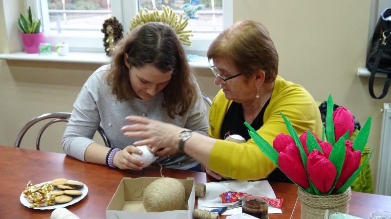 Bohaterką, realizowanego przez grupę uczniów z naszej szkoły, programu jest Wanda z Wężyków Niegolewska – patronka Wielkopolskich Kół Włościanek, pierwowzoru dzisiejszych Kół Gospodyń Wiejskich. W związku z tym uczennice udały się na spotkanie z paniami należącymi do KGW oraz Stowarzyszenia Seniorów „Druga Młodość”, gdzie miały okazję zobaczyć, rękodzielnicze cuda wykonywane przez członkinie kół, a także same, pod czujnym i życzliwym okiem pań, wykonać np. świąteczne jajka.
