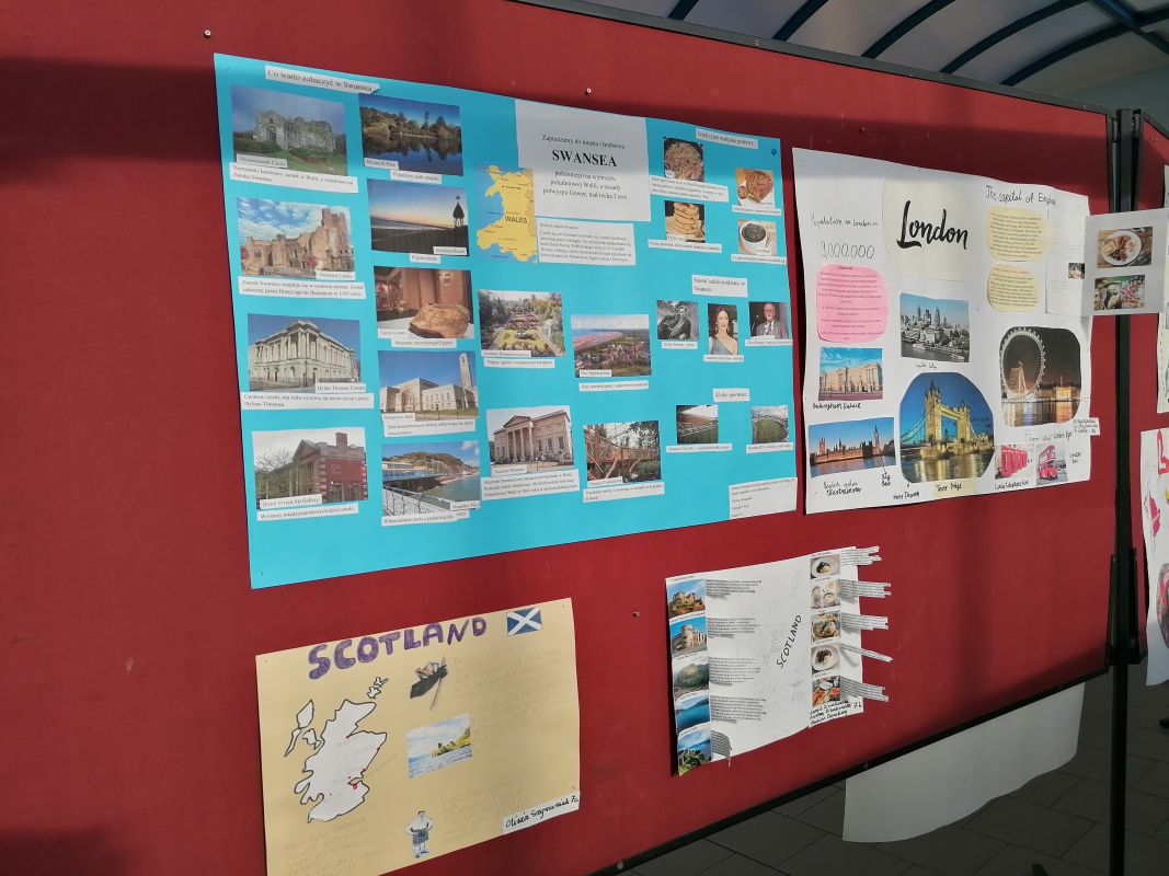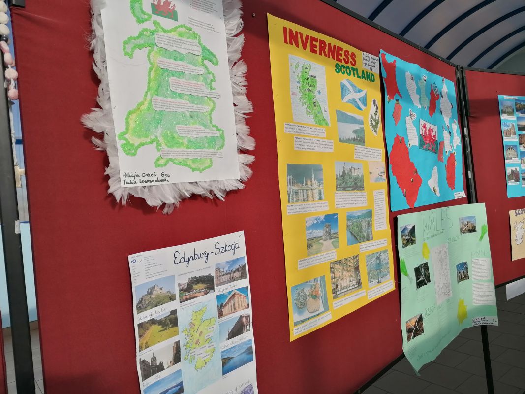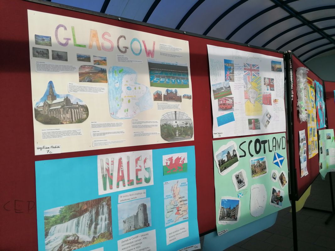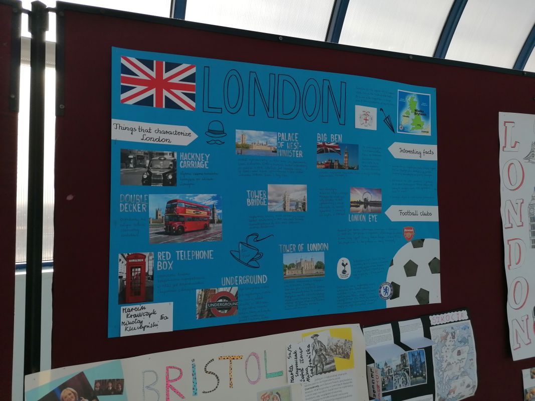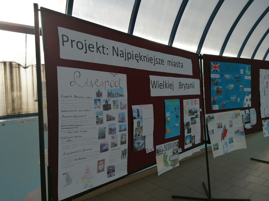 W II semestrze uczniowie klas V – VII wzięli udział w projekcie plastyczno-językowym, którego celem było przedstawienie w ciekawy sposób informacji na temat najpiękniejszych miast Wielkiej Brytanii. Uczniowie pracowali indywidualnie lub w małych zespołach, konsultowali się ze swoimi nauczycielami języka angielskiego i przygotowywali prace. Efekty ich działań można podziwiać w łączniku szkolnym. Najlepsze prace zostały nagrodzone.