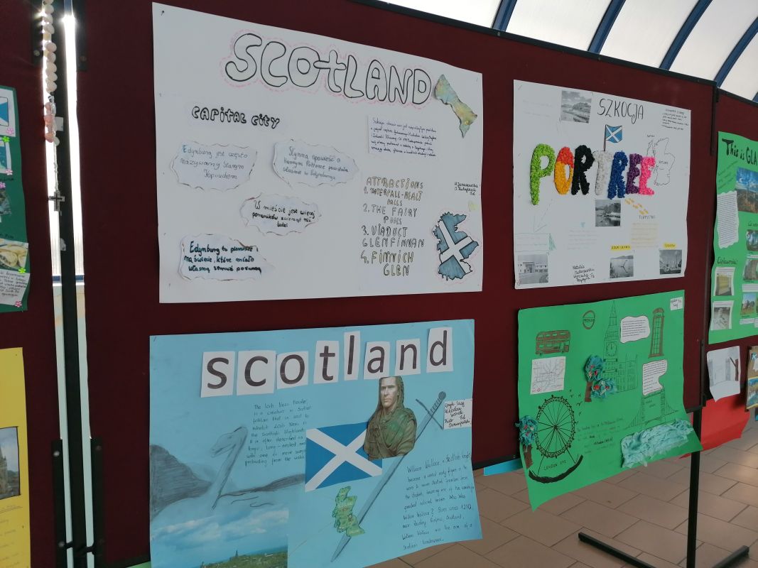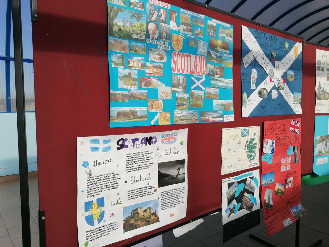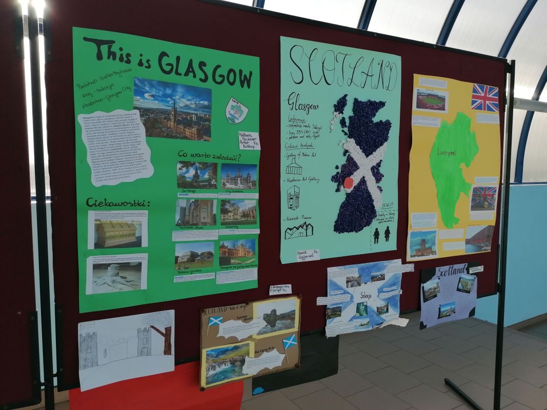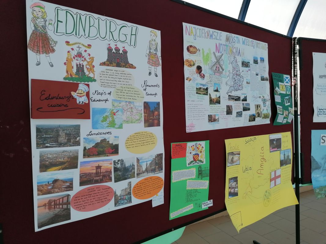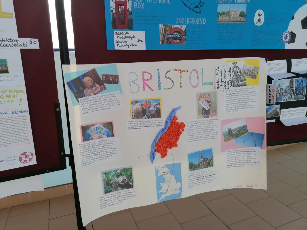 W II semestrze uczniowie klas V – VII wzięli udział w projekcie plastyczno-językowym, którego celem było przedstawienie w ciekawy sposób informacji na temat najpiękniejszych miast Wielkiej Brytanii. Uczniowie pracowali indywidualnie lub w małych zespołach, konsultowali się ze swoimi nauczycielami języka angielskiego i przygotowywali prace. Efekty ich działań można podziwiać w łączniku szkolnym. Najlepsze prace zostały nagrodzone.