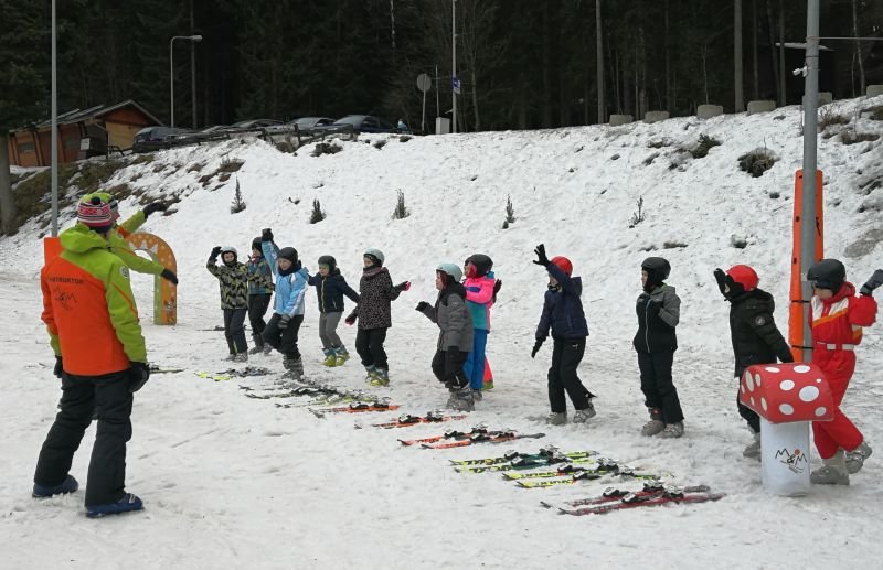 Pierwsze godziny na stoku spędzili pod czujnym okiem instruktorów. Poznali podstawowe zasady bezpieczeństwa i technikę jazdy. Radość była tym większa, że już pierwszego dnia cala grupa zjeżdżała z góry razem z innymi narciarzami. Każdego dnia chwile spędzone na stoku sprawiały, że umiejętności rosły a uśmiechy z twarzyczek  nie znikały.