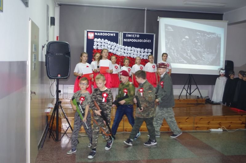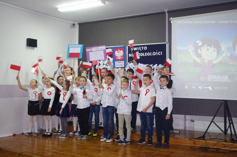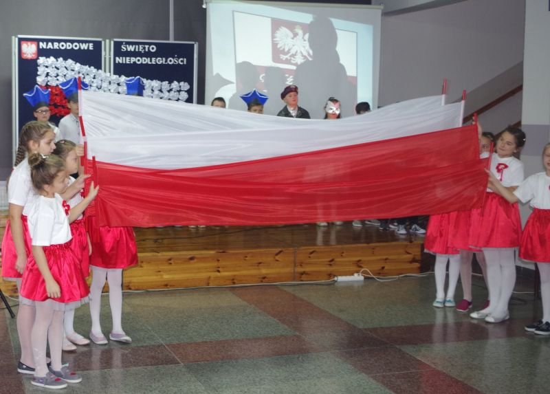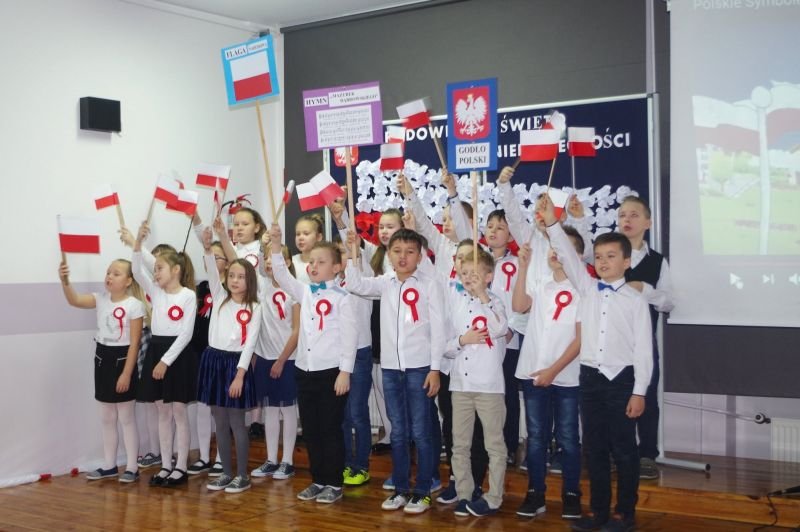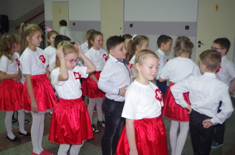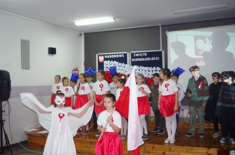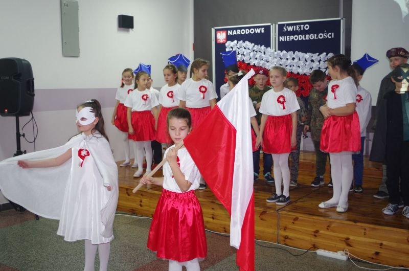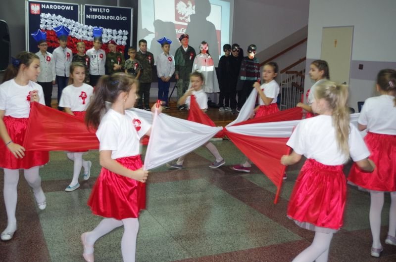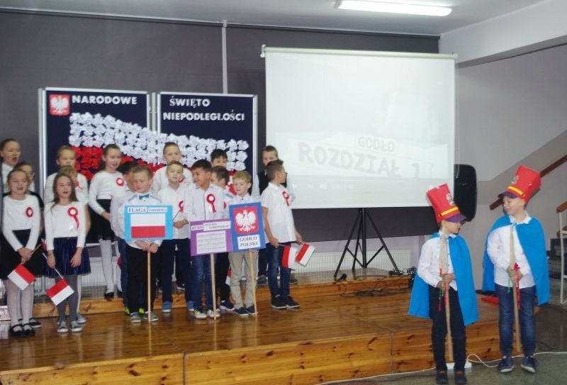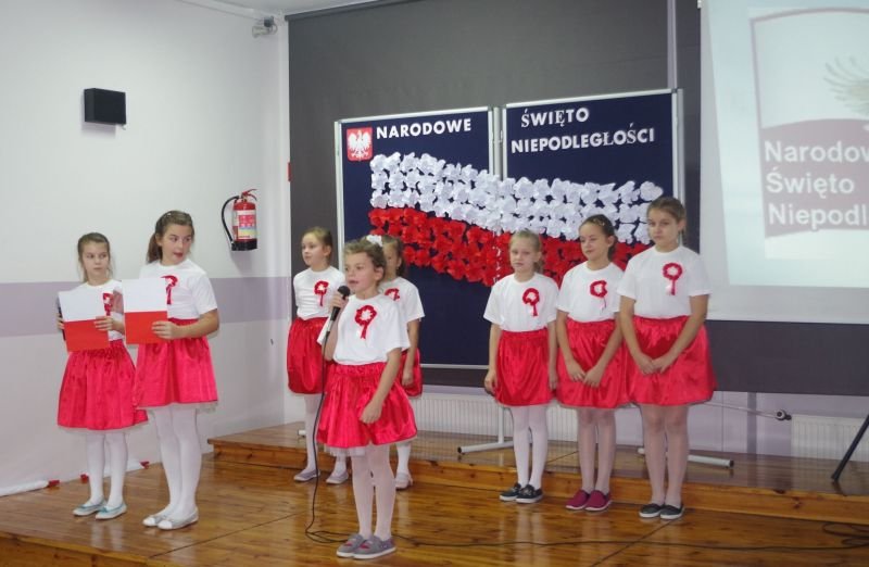 W przeddzień Narodowego Święta Niepodległości odbył się uroczysty apel, na który uczniowie klas trzecich zaprosili rodziców, nauczycieli oraz młodsze koleżanki i kolegów. Występ był swego rodzaju podróżą w czasie. Ukazał w skrócie fragment historii naszego kraju – okres zaborów i moment odzyskania niepodległości. Trzecioklasiści przypomnieli też legendę związaną z początkiem państwowości polskiej oraz nasze symbole narodowe. Program artystyczny zawierał również wątek o charakterze radosnym, ponieważ 99 lat niepodległości to dla Polaków powód do zadowolenia i dumy. Przepojone miłością do Ojczyzny utwory poetyckie, piosenki i tańce, z pewnością wprowadziły wszystkich w atmosferę zbliżającego się Narodowego Święta Niepodległości oraz rozbudziły tkwiące w każdym z nas uczucia patriotyczne.