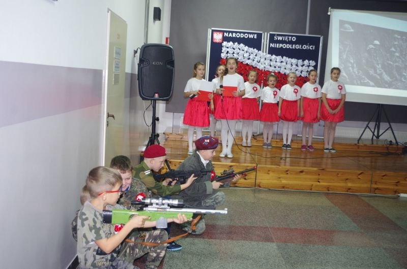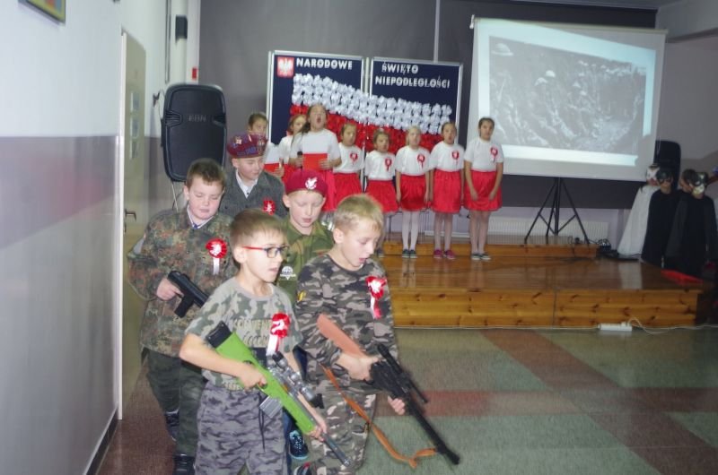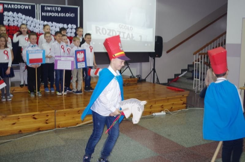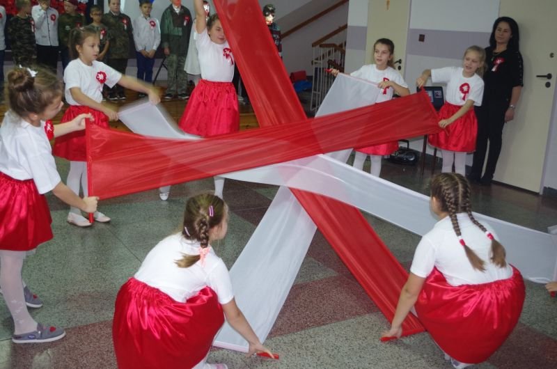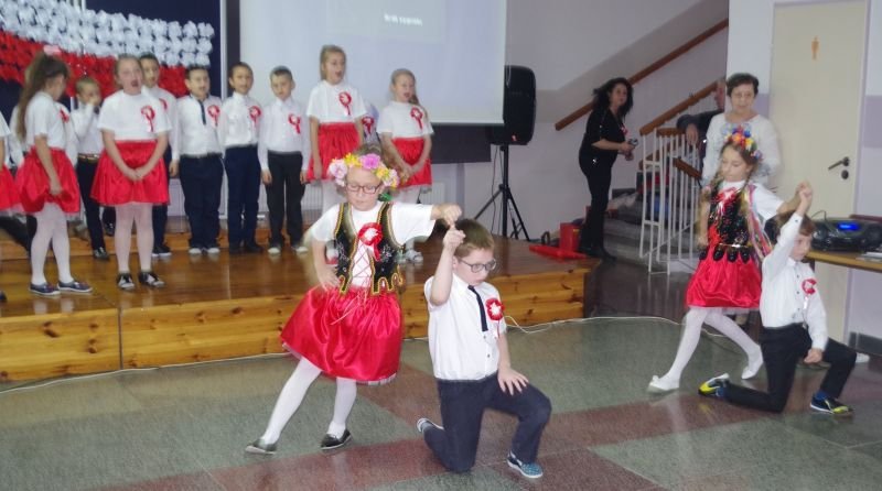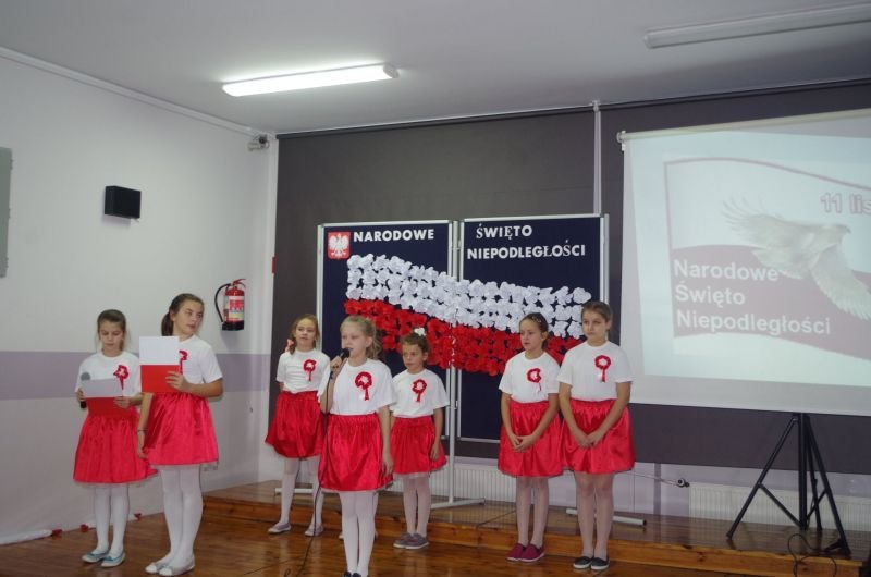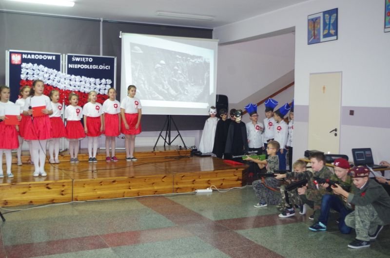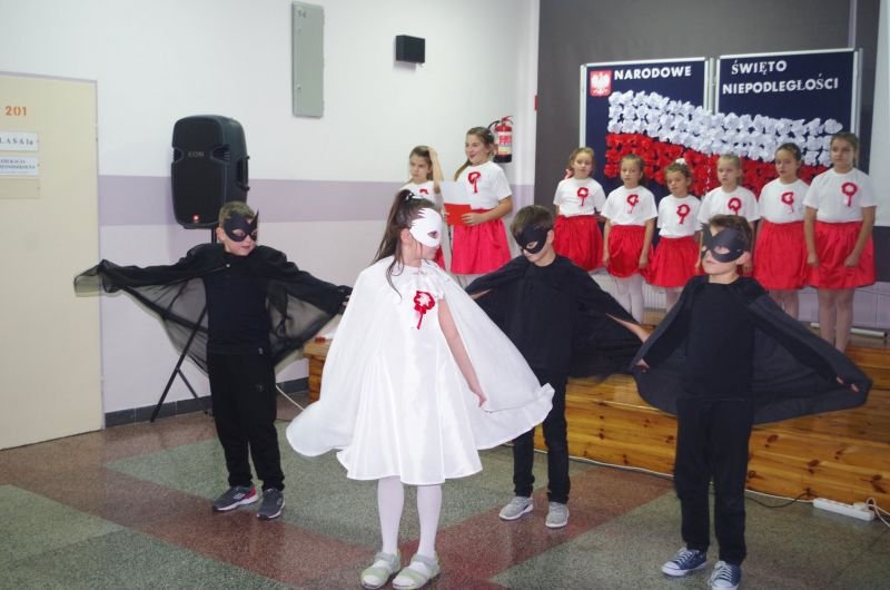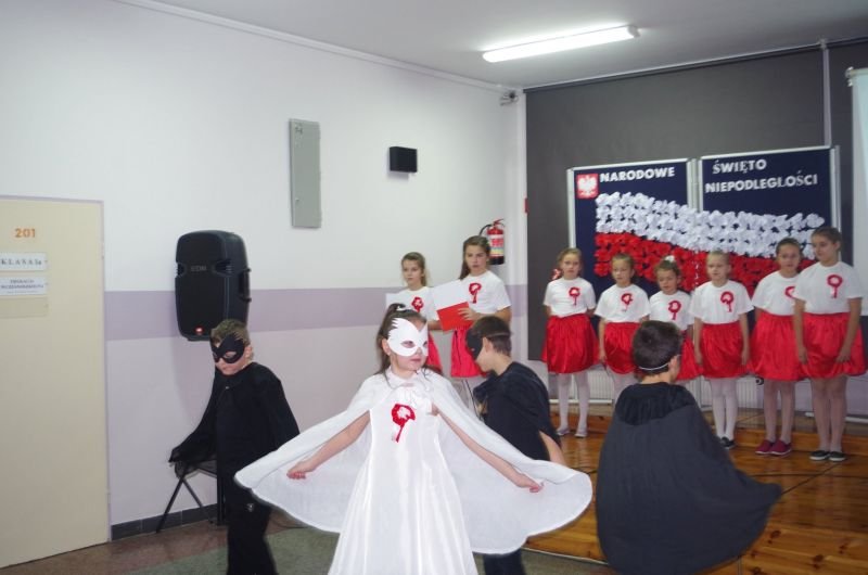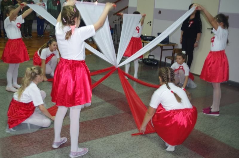 W przeddzień Narodowego Święta Niepodległości odbył się uroczysty apel, na który uczniowie klas trzecich zaprosili rodziców, nauczycieli oraz młodsze koleżanki i kolegów. Występ był swego rodzaju podróżą w czasie. Ukazał w skrócie fragment historii naszego kraju – okres zaborów i moment odzyskania niepodległości. Trzecioklasiści przypomnieli też legendę związaną z początkiem państwowości polskiej oraz nasze symbole narodowe. Program artystyczny zawierał również wątek o charakterze radosnym, ponieważ 99 lat niepodległości to dla Polaków powód do zadowolenia i dumy. Przepojone miłością do Ojczyzny utwory poetyckie, piosenki i tańce, z pewnością wprowadziły wszystkich w atmosferę zbliżającego się Narodowego Święta Niepodległości oraz rozbudziły tkwiące w każdym z nas uczucia patriotyczne.