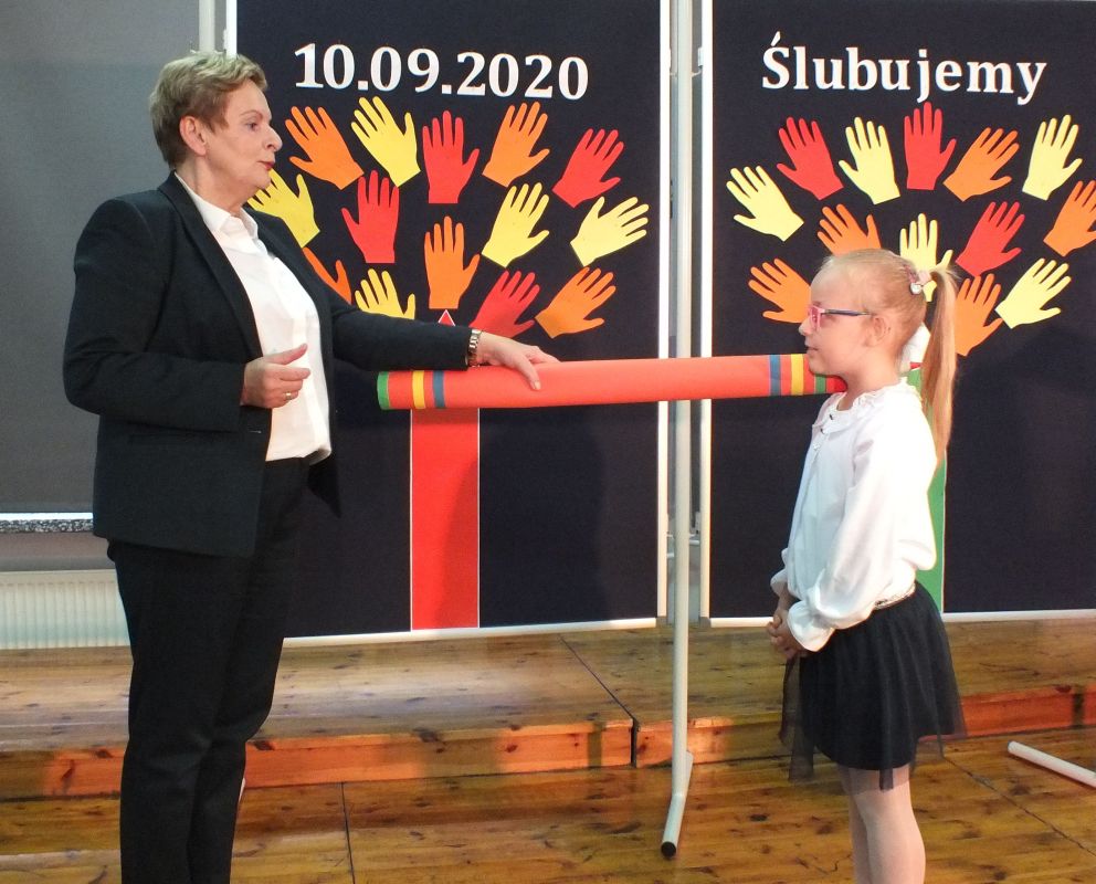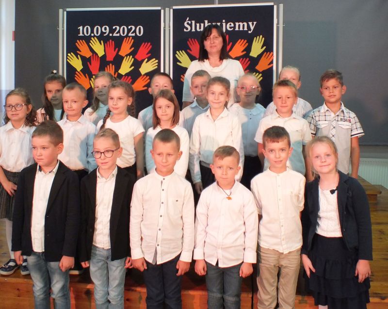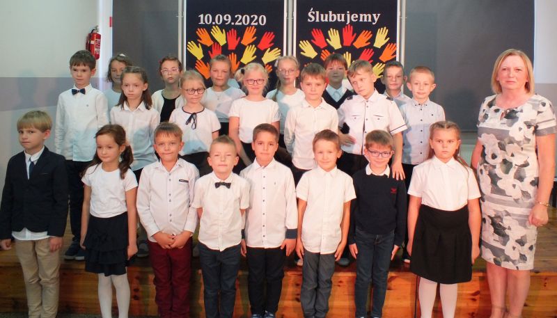 Uroczystą i oczekiwaną przez nich chwilą było ślubowanie na sztandar szkoły. Pierwszaki ślubowały, że będą: dbać o dobre imię swojej klasy i szkoły, uczyć się w szkole jak kochać ojczyznę, starać się być dobrym kolegą, swym zachowaniem i nauką sprawiać radość rodzicom i nauczycielom.