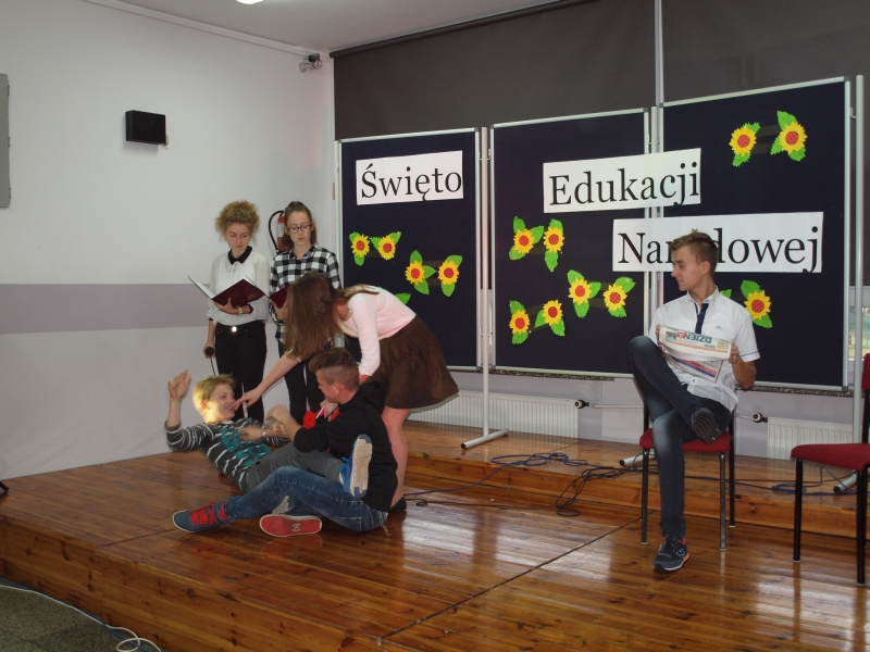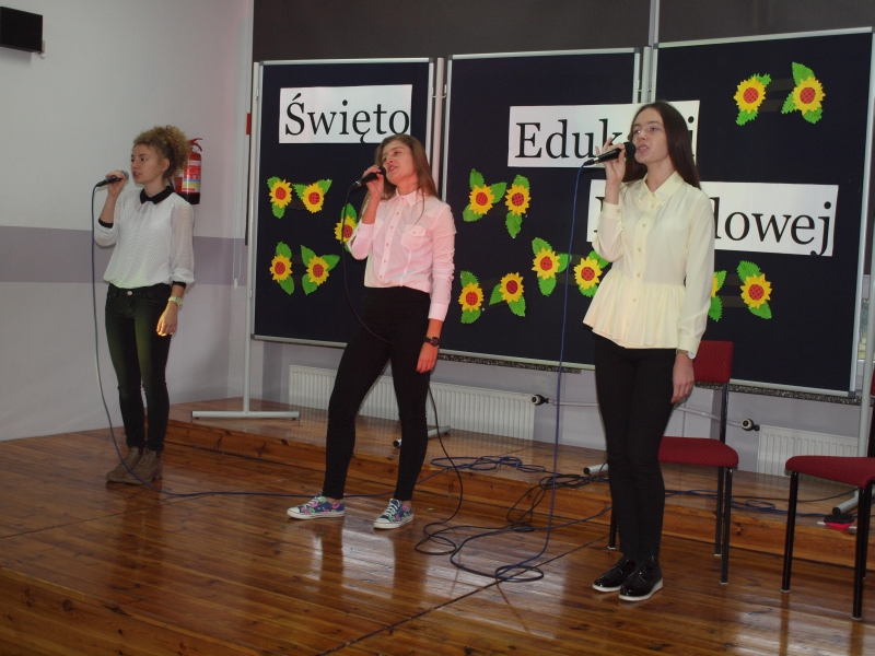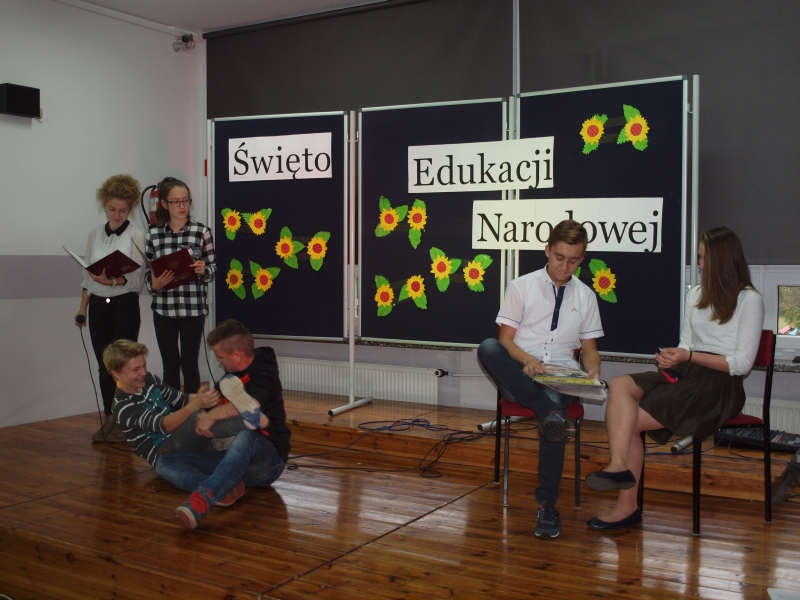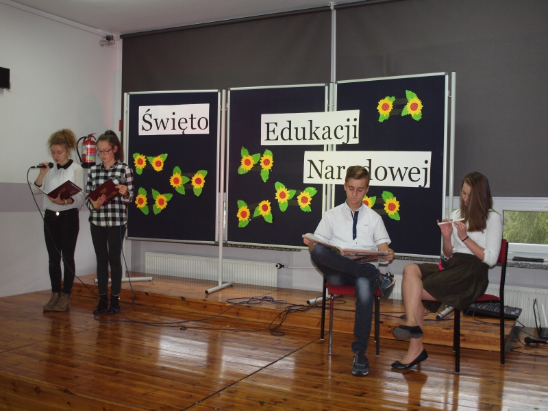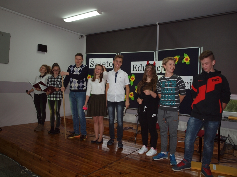 Świętowanie rozpoczęło się już w środę, 12 października. Wtedy to, przy wspólnym stole spotkali się: pracownicy Zespołu Szkół, Dyrekcja, przedstawiciele władz samorządowych, z burmistrz - Honoratą Kozłowską i Przewodniczącą Rady Miejskiej – Genowefą Feldgebel, pracownicy Zespołu Ekonomiczno-Administracyjnego Szkół, przedstawiciele Rady Rodziców, z przewodniczącą – Lucyną Rosolską oraz proboszcz – Wieńczysław Nowak. Uroczystość miała w tym roku szczególnie uroczysty charakter, rozpoczął ją bowiem występ dwójki uczniów z kl. IIIb gimnazjum. Agata Frąckowiak najpierw zagrała na saksofonie przebój „Thank you for the music” zespołu Abba, później zaś zaśpiewała piosenkę pt. „Łagodna”. Kajetan Włodarczak natomiast zaprezentował swoje umiejętności gry na trąbce. W trakcie spotkania padło wiele ciepłych słów, nie tylko pod adresem nauczycieli, ale wszystkich pracowników szkoły. Była też okazja do wręczenia nagród dyrektora.