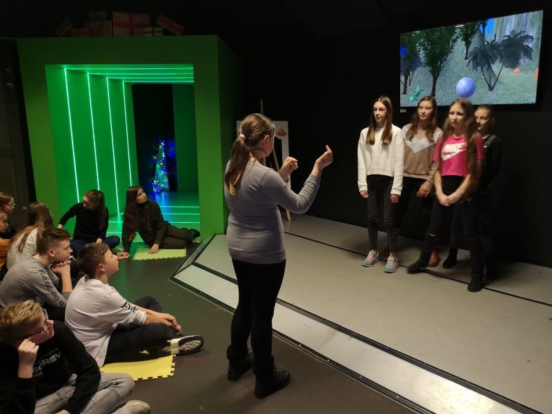Uczestnicy wyprawy podążali szlakiem zielonym. Po drodze, biorąc udział w różnorodnych eksperymentach, poznawali tajemnice światła i barw. Przekonali się na własnej skórze na czym polega złudzenie optyczne i uzmysłowili sobie, że kolejność kolorów w tęczy czasami bywa odwrócona. Badali także niezwykłe właściwości wody, bawiąc się z różnymi jej stanami, a także poznawali tajemnice stało- i zmiennocieplności, wchodząc w blisko kontakt z sympatycznym patyczakiem Zuzą. Mieli ponadto okazję do pracy zespołowej. Dzięki Platformie Big Board, mogli sterować wirtualnym przedmiotem znajdującym się na ekranie, przenosząc odpowiednio środek ciężkości członków grupy stojących na podłodze.
